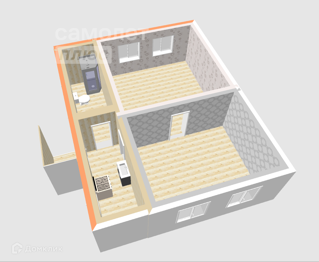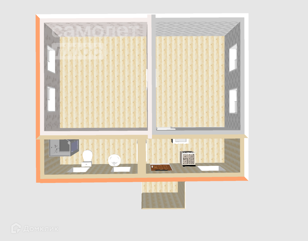 Общая площадь 44.4 м2