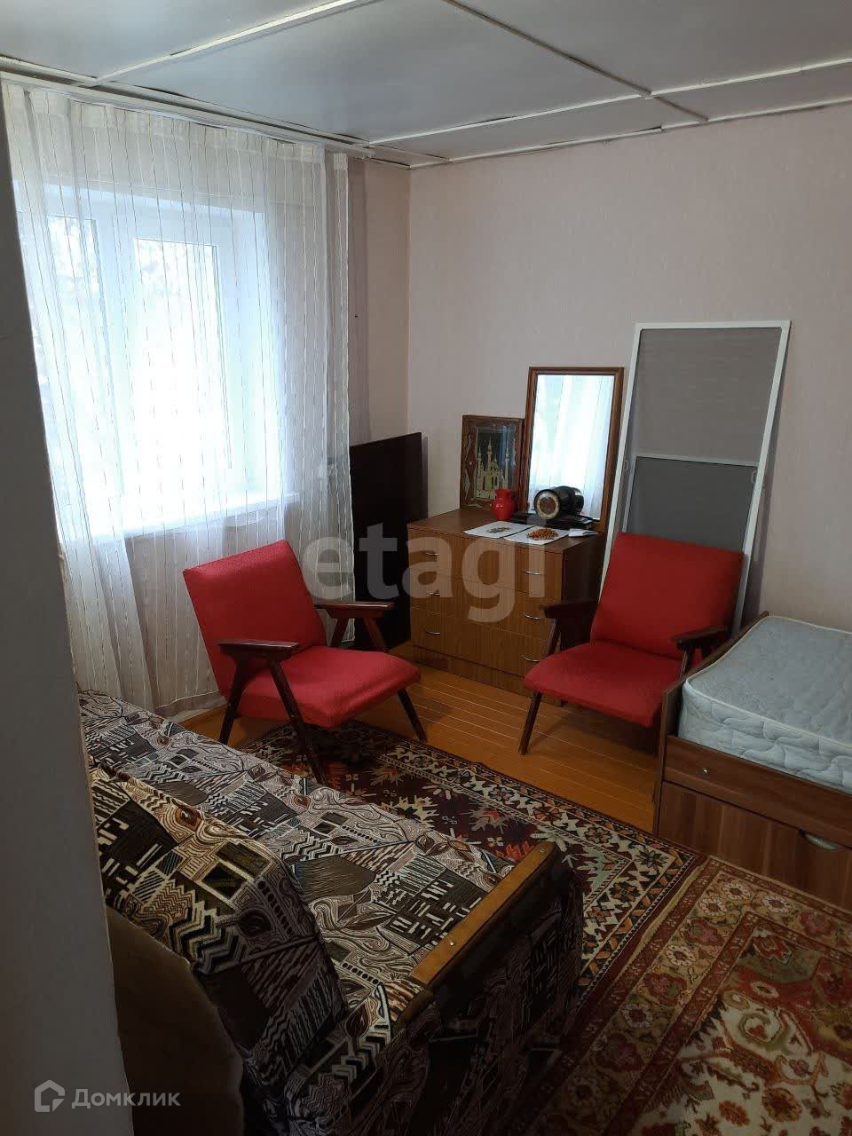 Большая часть мебели остается: диваны, кровать, шкаф, комод, обеденный стол, стулья, холодильник.