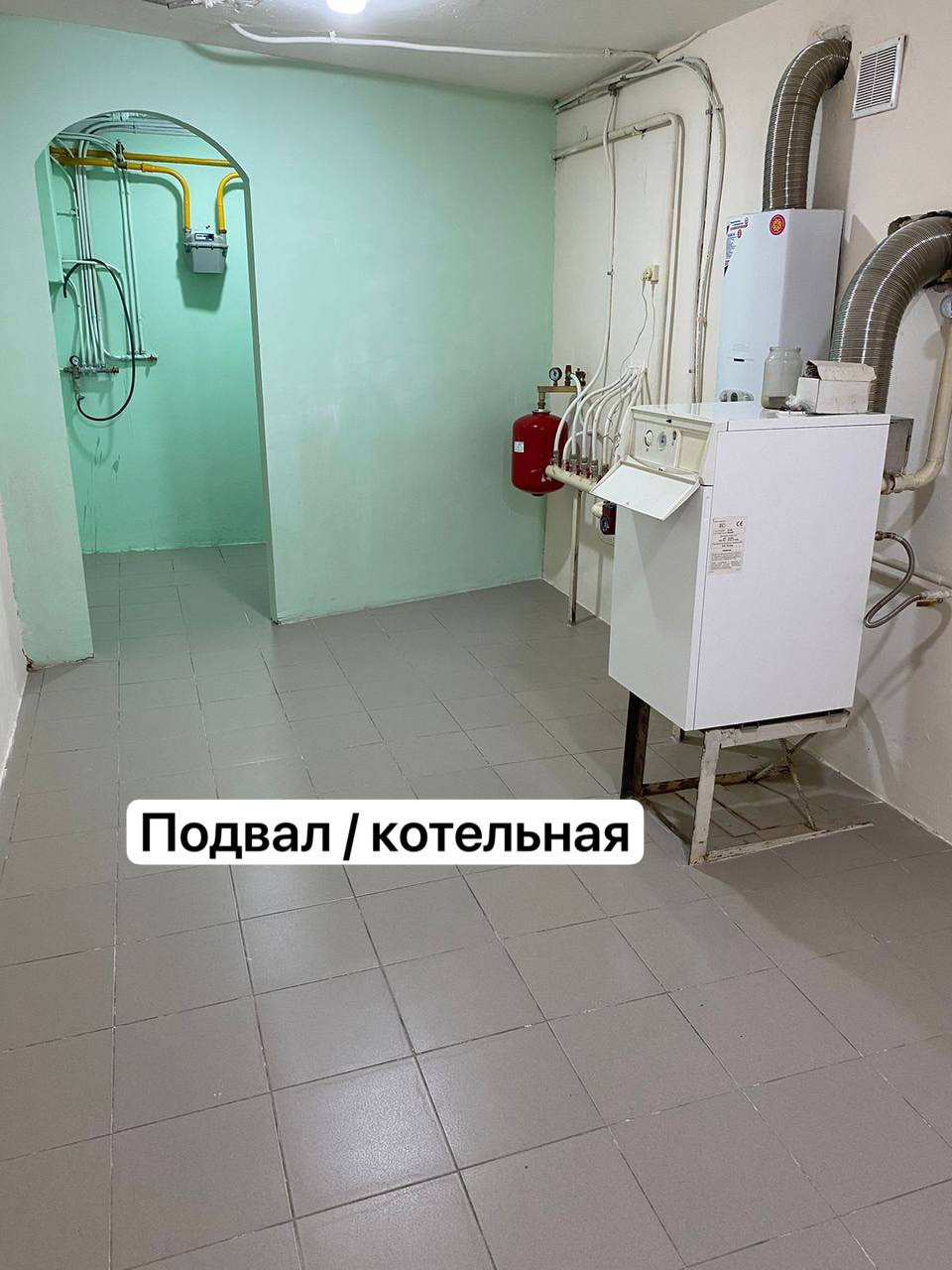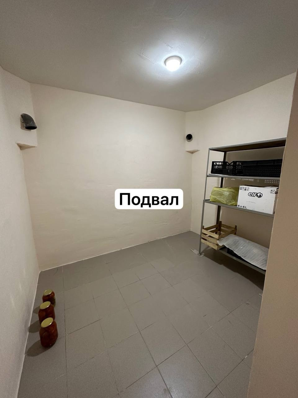 Подвальное помещение : котельная, две большие кладовки , запасной выход .