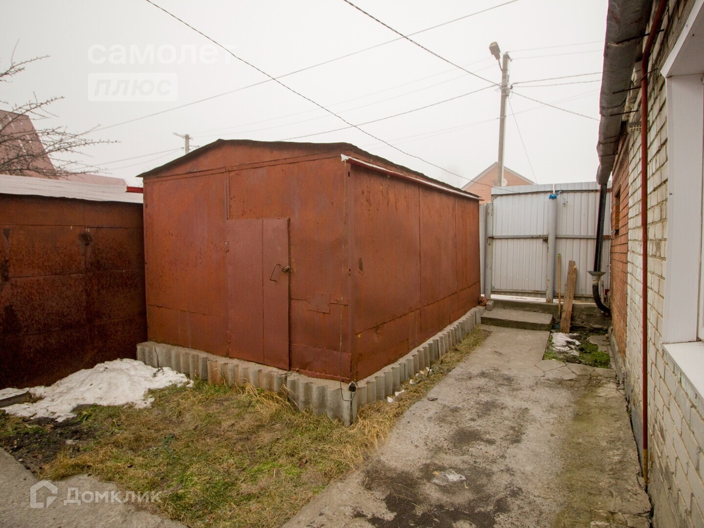 На территории хороший гараж. Имеется участок с насаждениями.