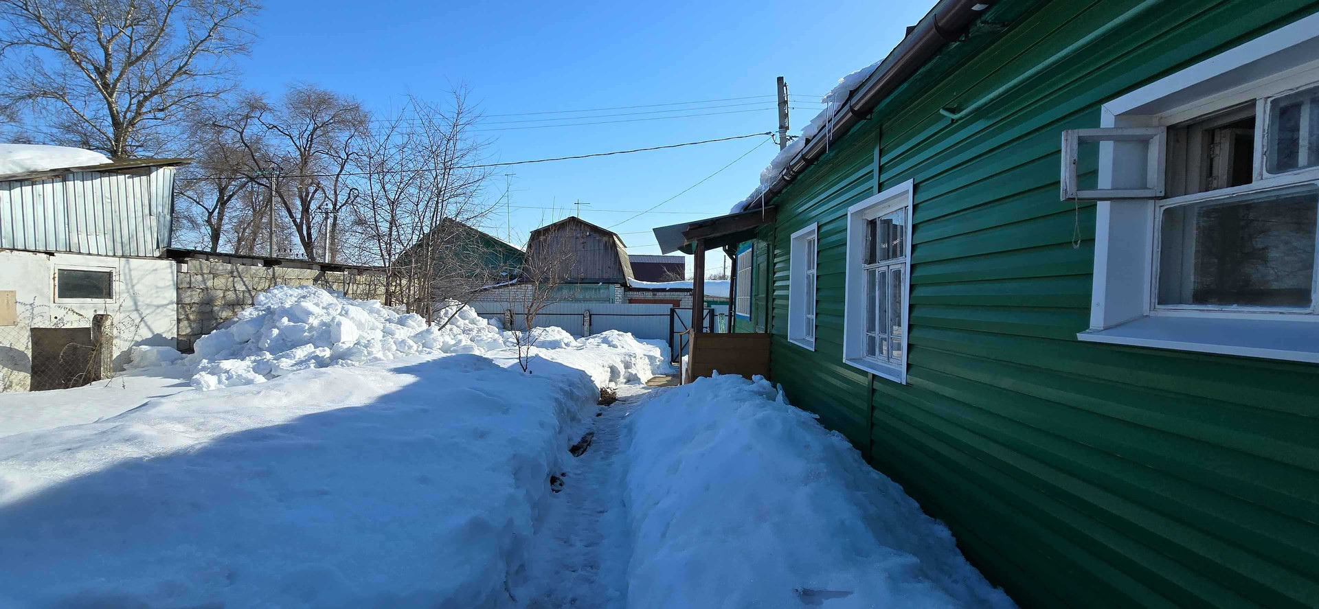 Деревянный дом из двух комнат с надворными постройками, в черте города.