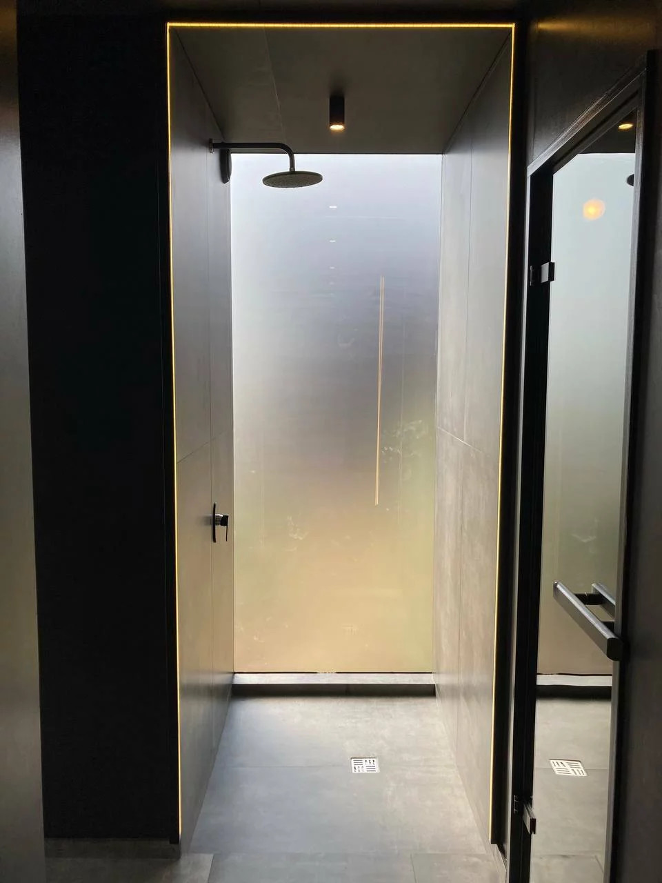 — Дверь в парную из стекла, дверь в санузел из фанеры