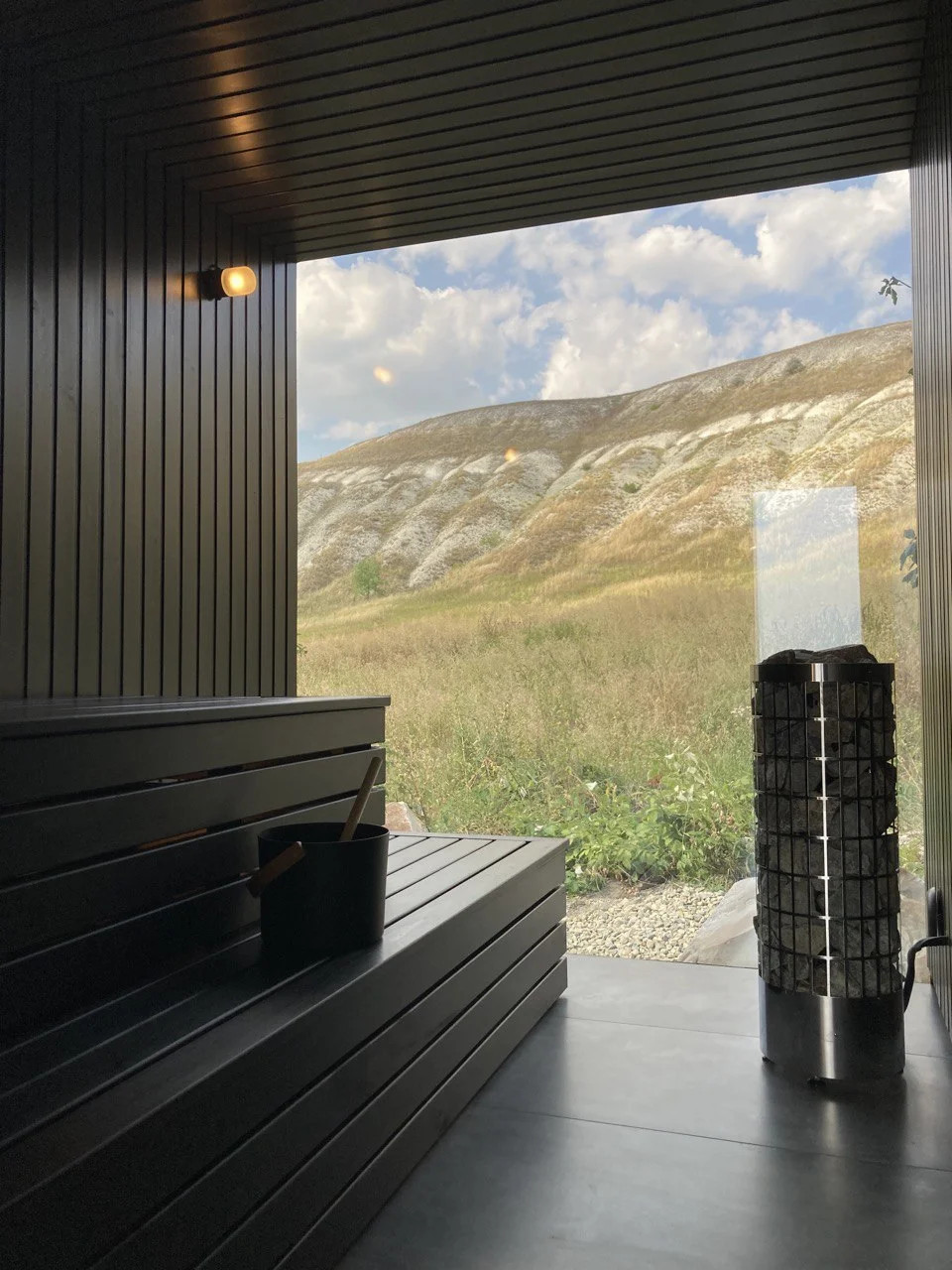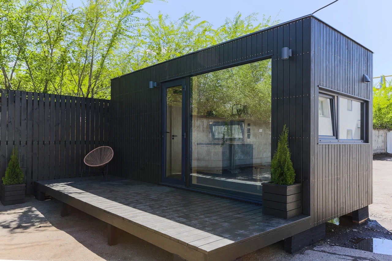 Модульная баня с панорамными окнами