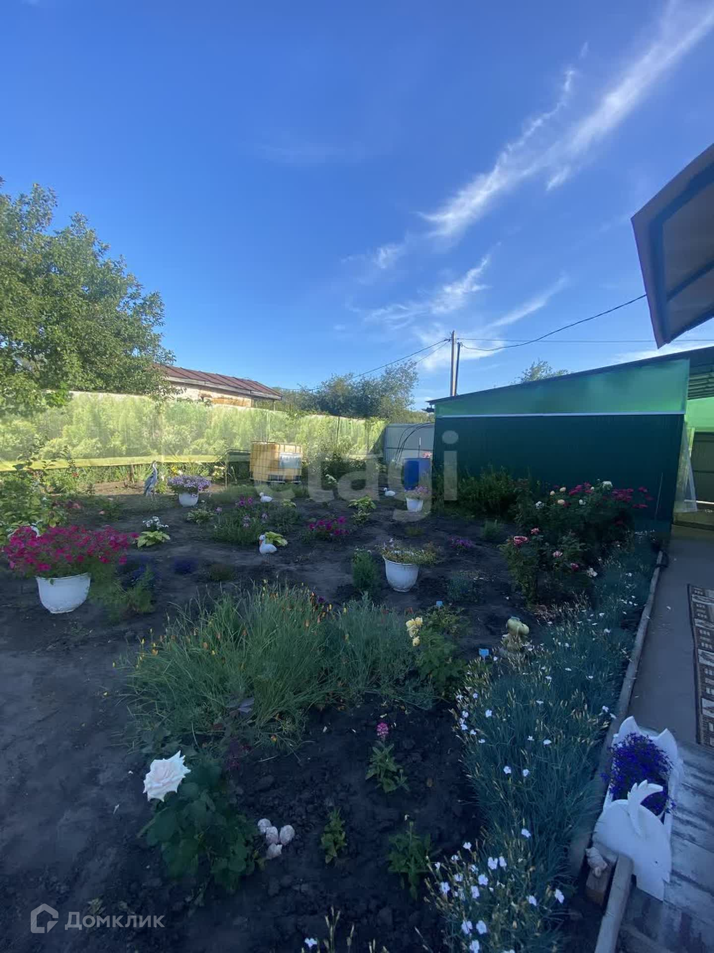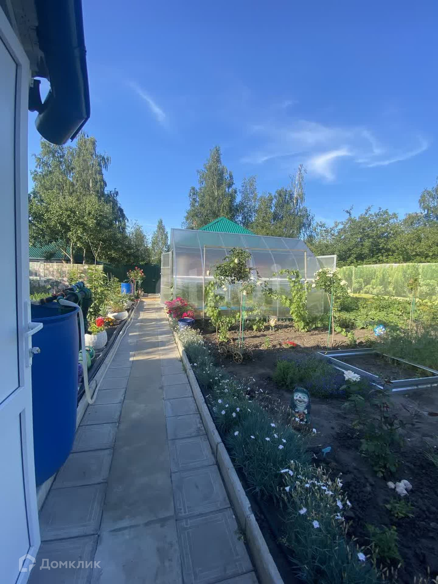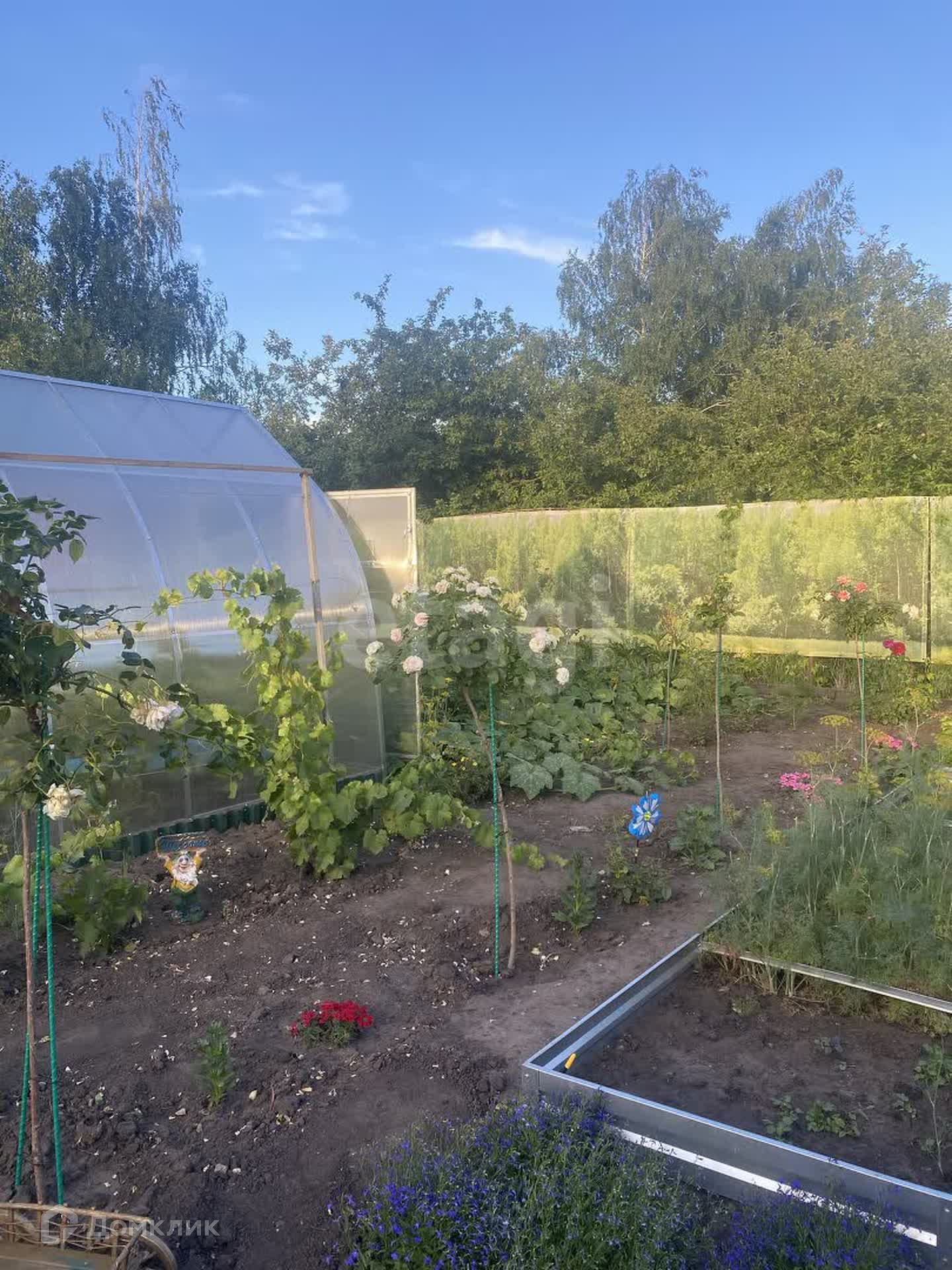 На территории участка : теплицы, грядки , хозяйственные постройки, оборудовано машиноместо. На участке огромное количество цветов, особенно радуют кусты роз.