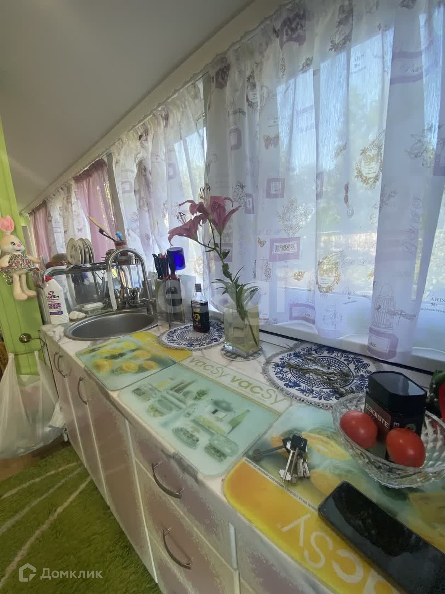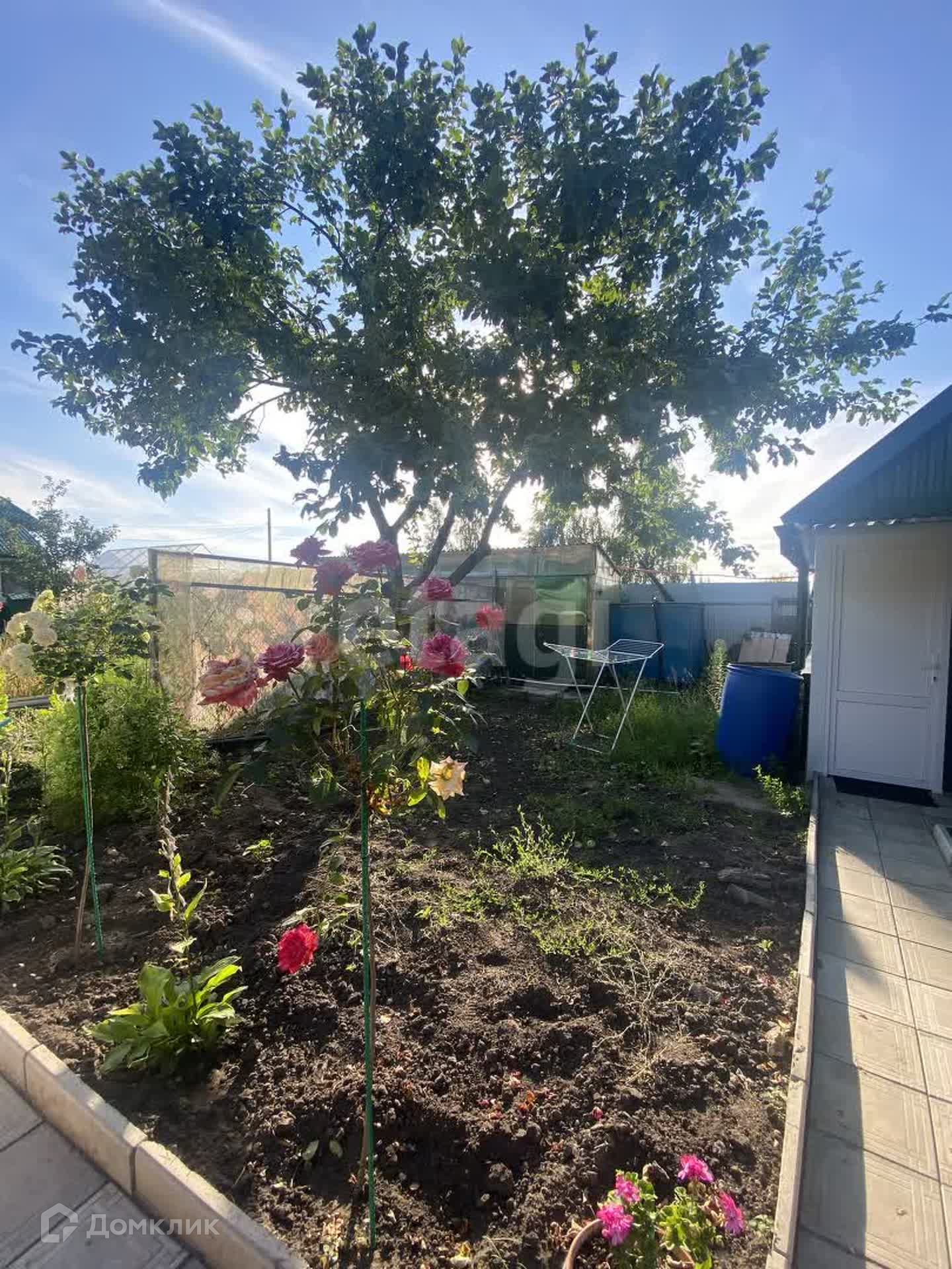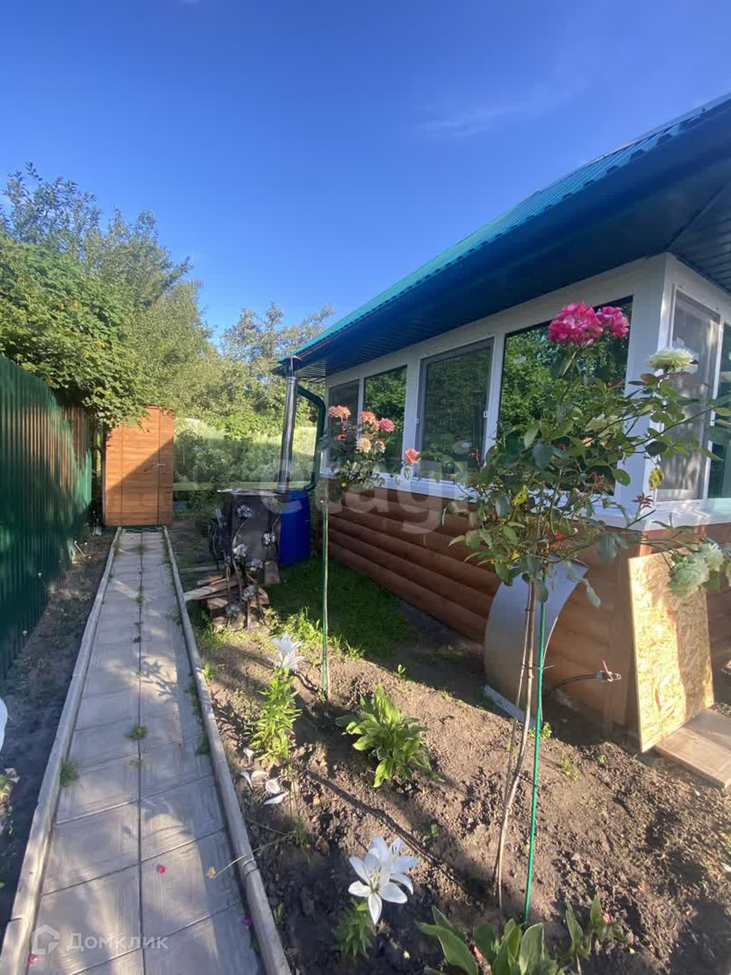 На территории участка : теплицы, грядки , хозяйственные постройки, оборудовано машиноместо. На участке огромное количество цветов, особенно радуют кусты роз.