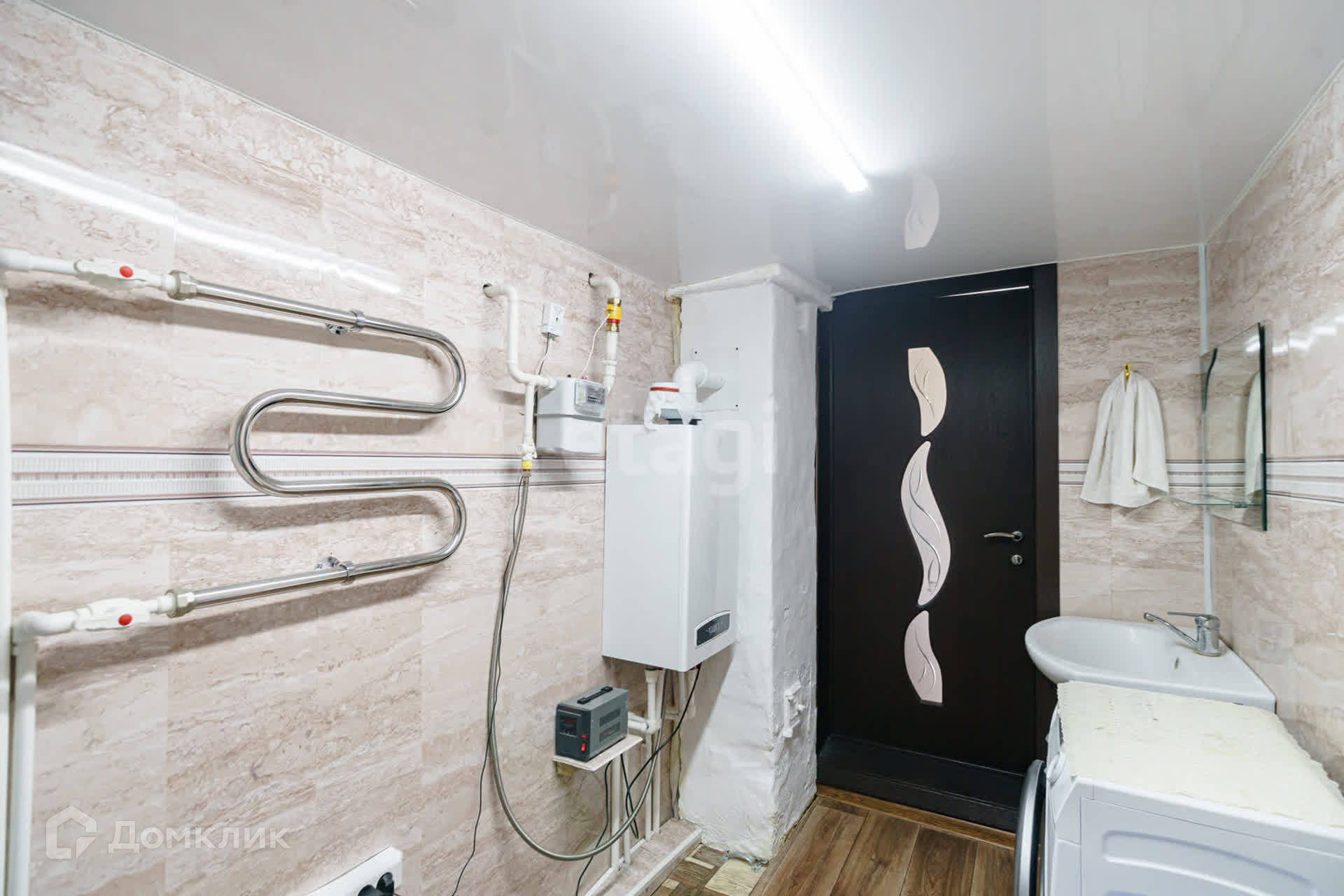 Снаружи обшит сайдингом.Заменяна крыша в 2009г,под крышей новые стропила.Внутри проведён качественный ремонт пола,систем отопления и водоотведения,полностью заменена электропроводка,установлены натяжные потолки, новые меж.комнатные двери.Входная качественная железная дверь. Дом очень тёплый.Отапливается 2-х контурным газовым котлом. Две комнаты изолированные.Есть гардеробная комната. Кухня 8 кв. м, сан.узел 10 кв.м.