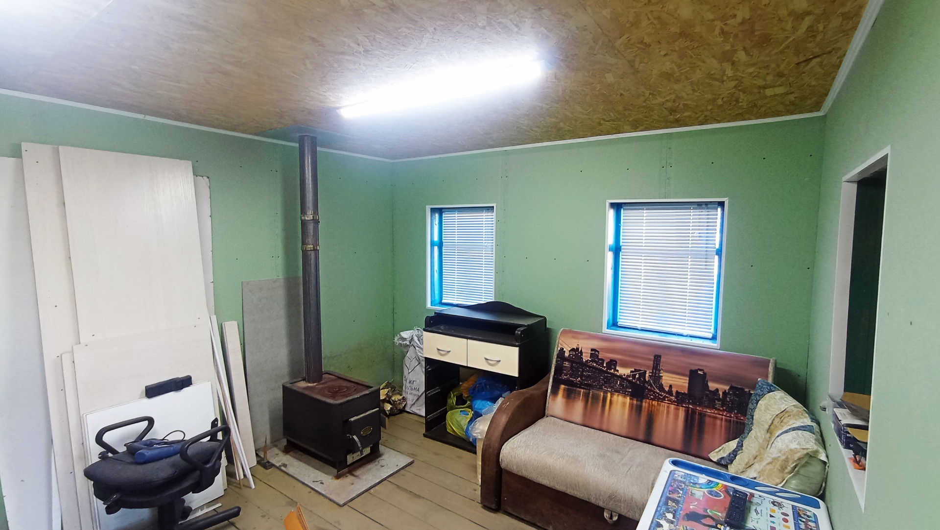В доме начали, но не закончили ремонт, есть печка.