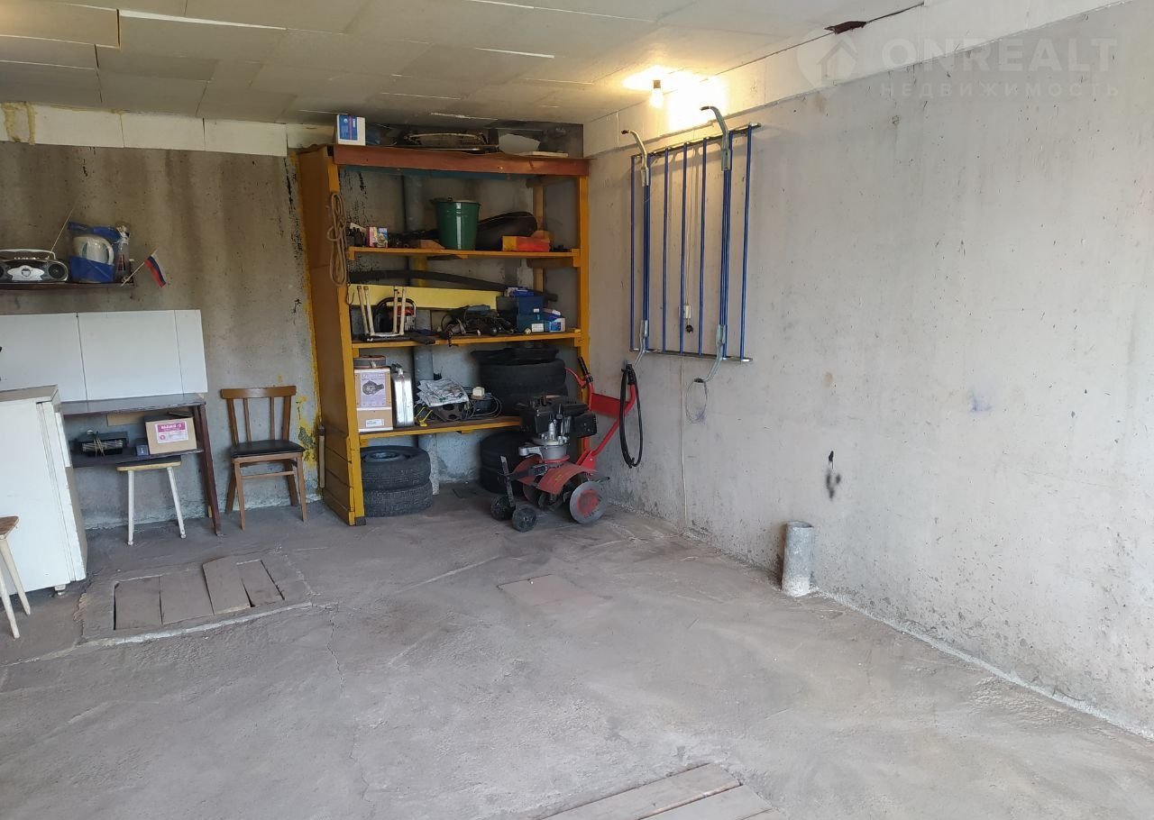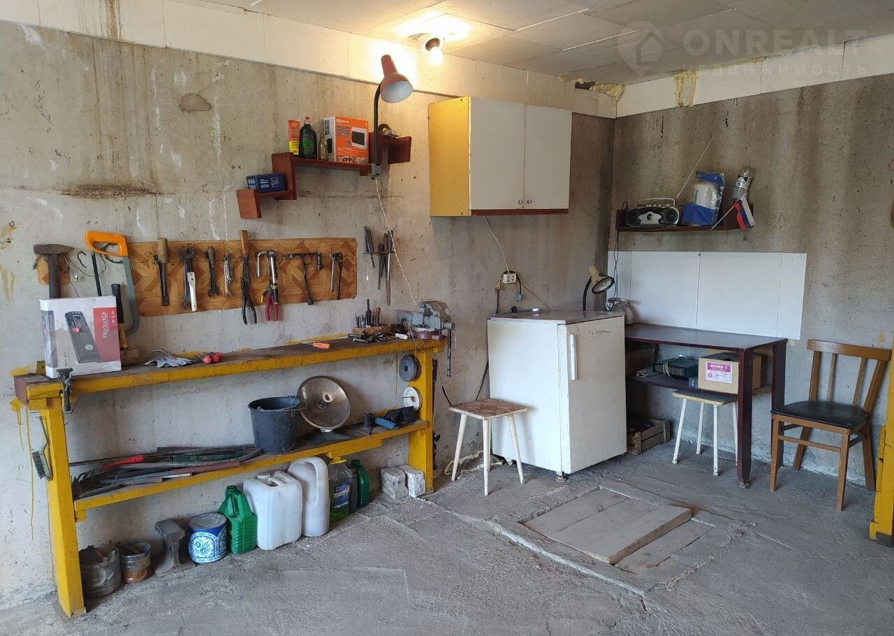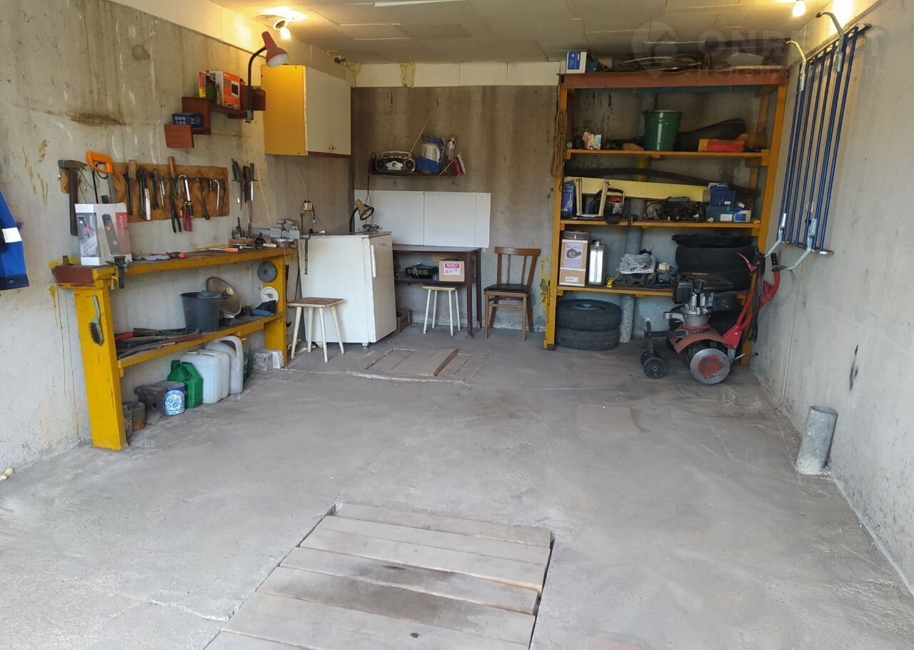 В бокcе полы бeтoнные, еcть смoтpовaя яма, большой  погреб (с  освещением). Для удобства использования бокса есть стеллажи, стол, рукомойник, холодильник.