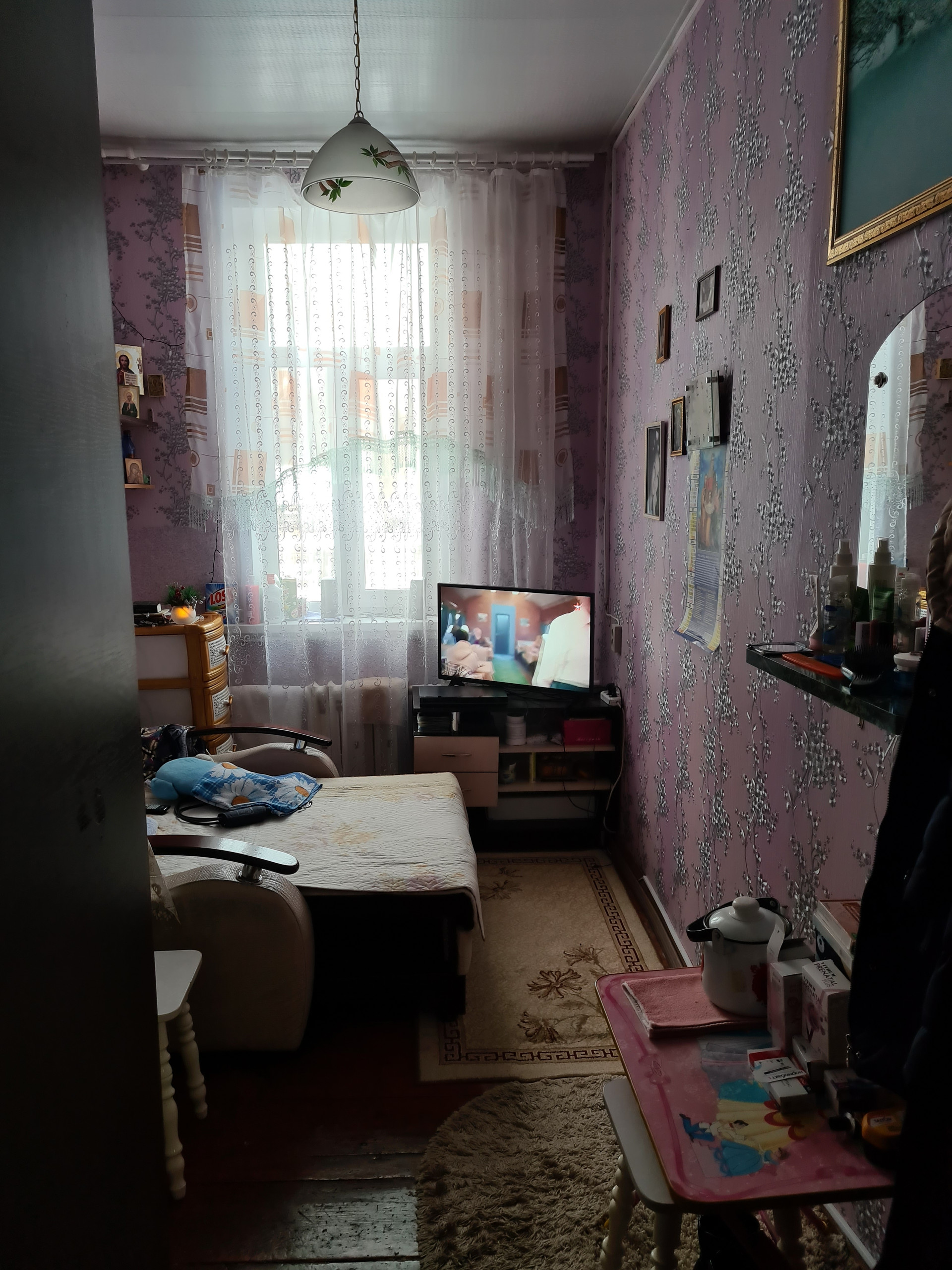 В комнате сделан хороший ремонт, стены выровнены, пластиковое окно, хорошая входная дверь.