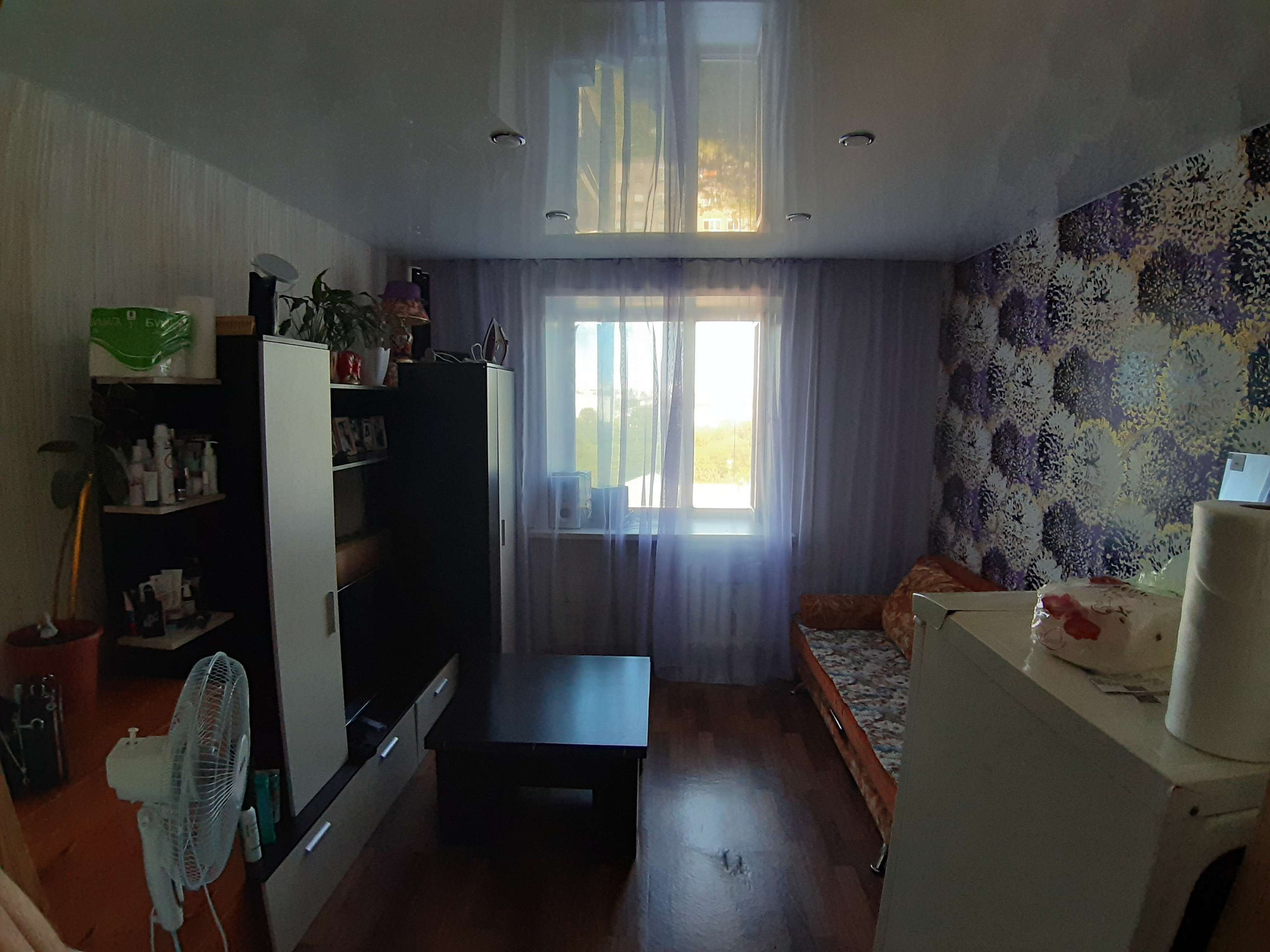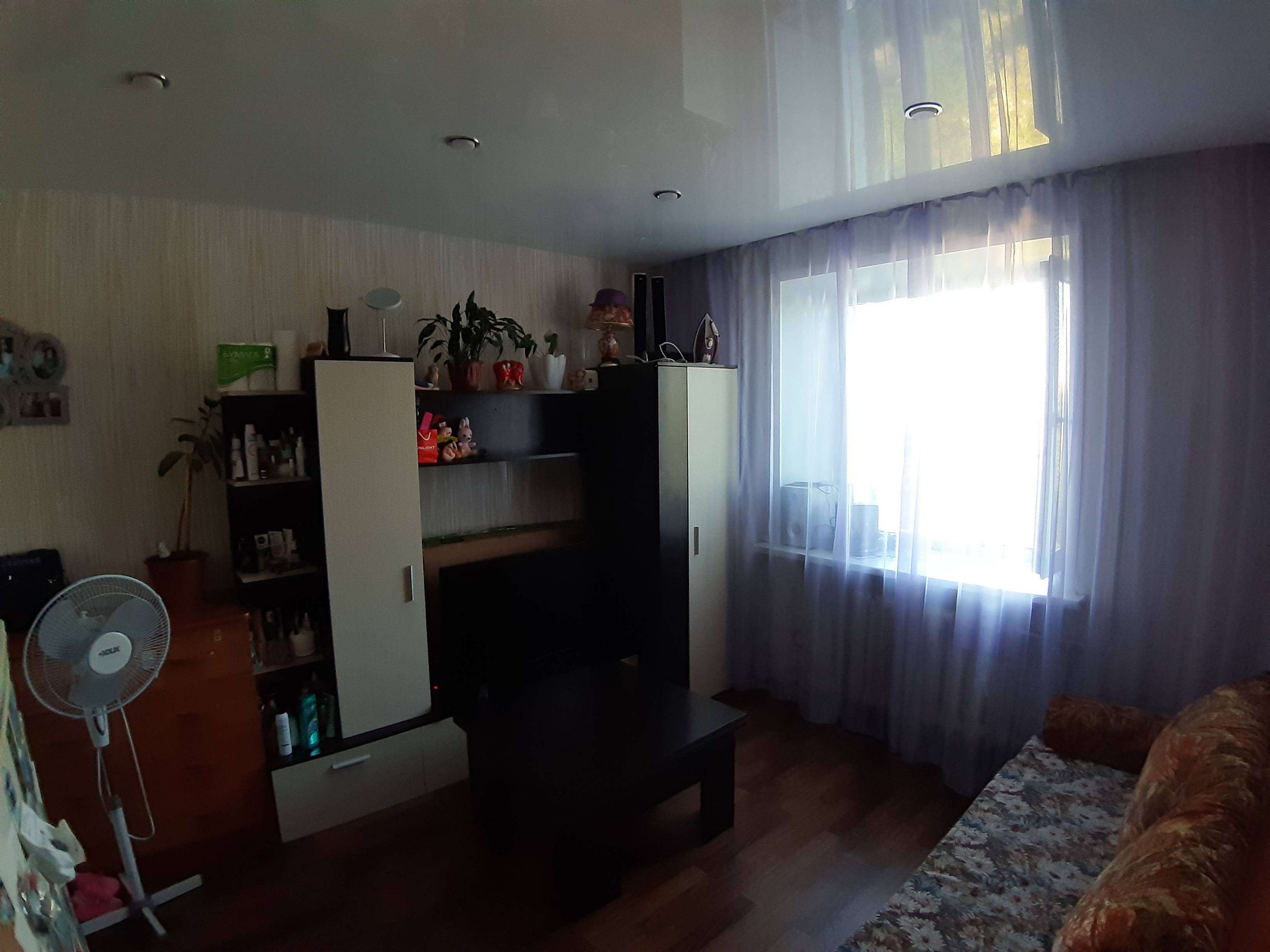 В комнате установлено пластиковое окно, натяжной потолок.