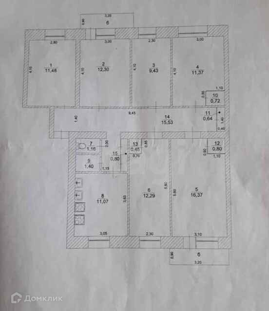 Продается комната площадью 11,48 кв.м. в четырехэтажном кирпичном доме на четвертом этаже в шестикомнатной квартире.