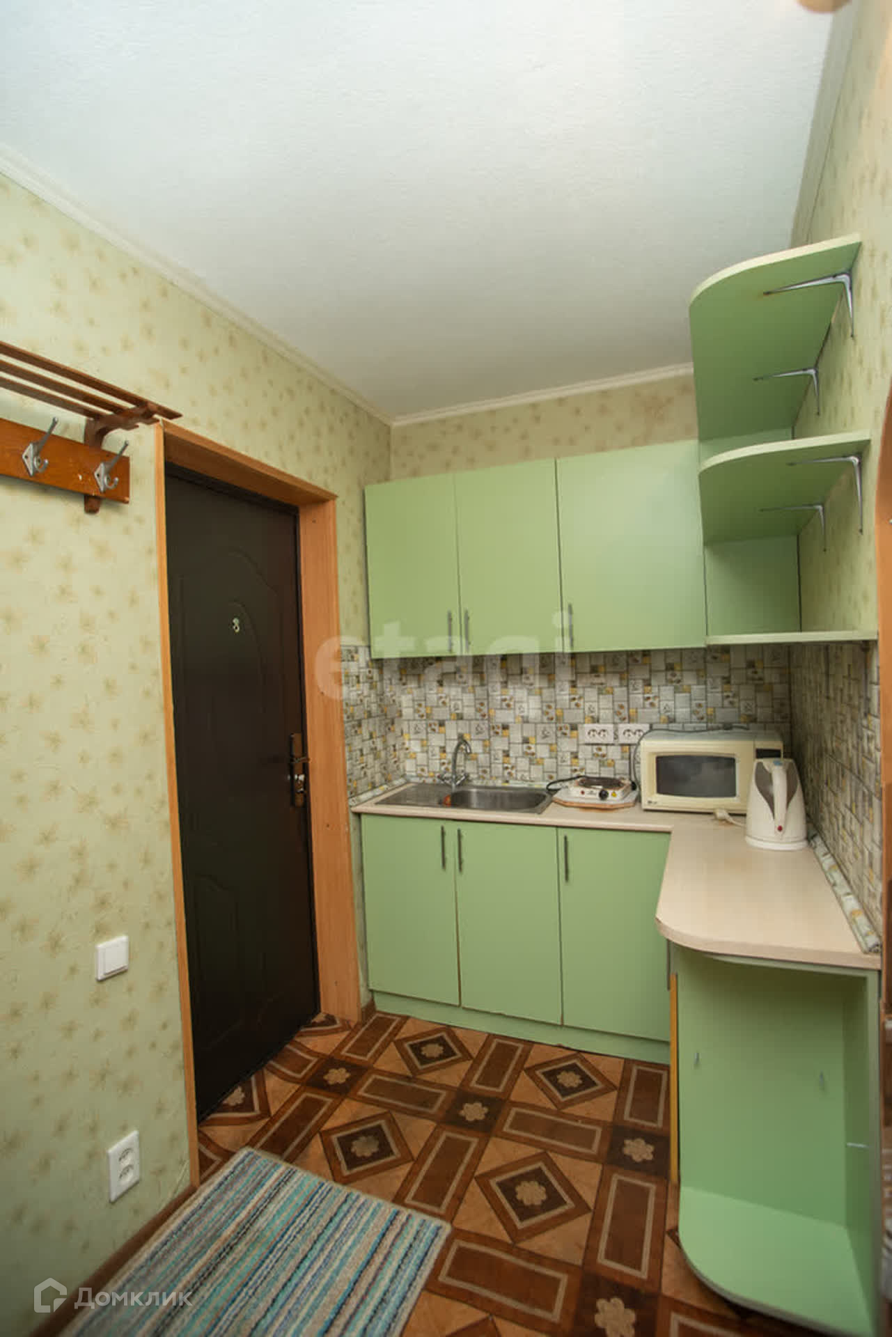 Вода заведена в комнату , есть свой кухонный гарнитур. Сан узел общий , отделан плиткой .