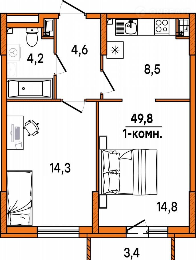Общая площадь 47.4 м2
