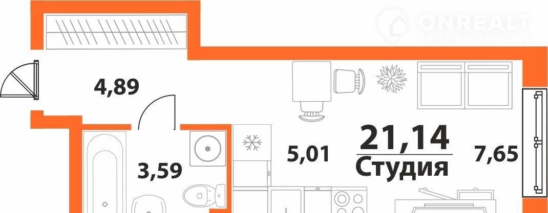 Общая площадь 21.1 м2