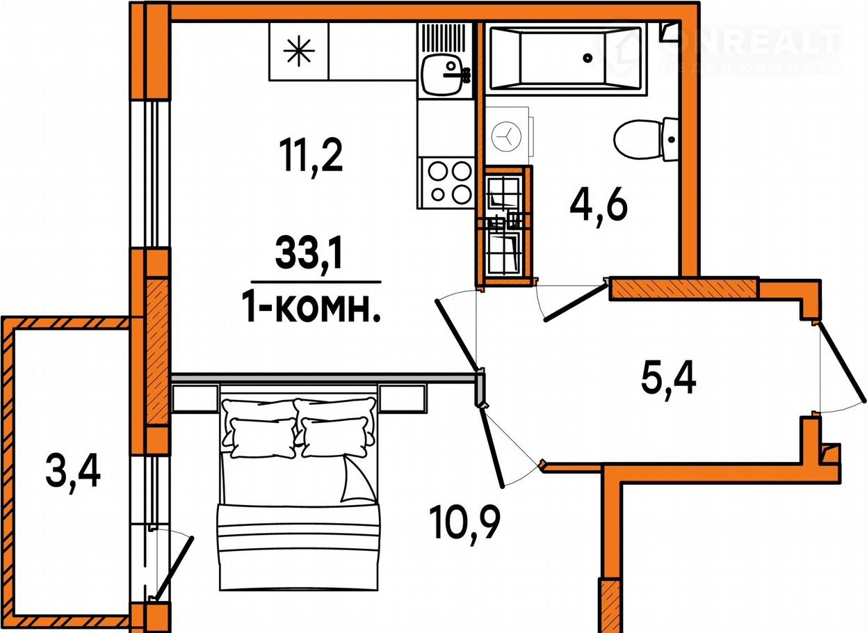 Общая площадь 33.1 м2