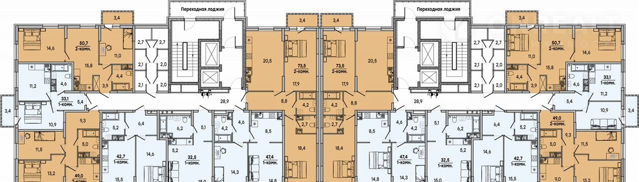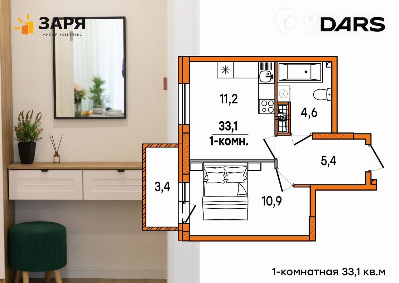 1-комнатная квартира, 33.1 м2, этаж 15 / 16, на продажу в Ульяновске