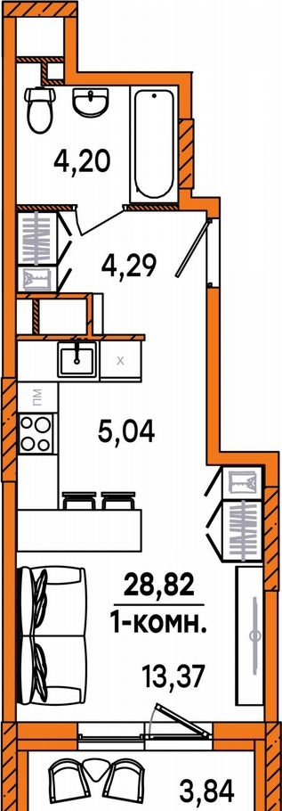 Общая площадь 28.8 м2