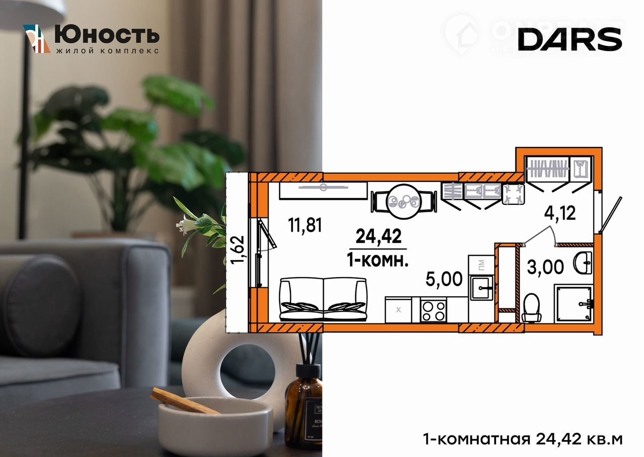 1-комнатная квартира, 24.4 м2, этаж 10 / 21, на продажу в Ульяновске