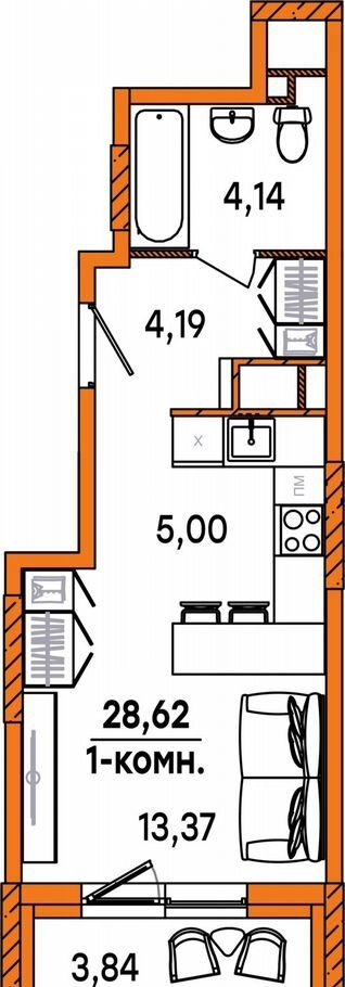 Общая площадь 28.6 м2