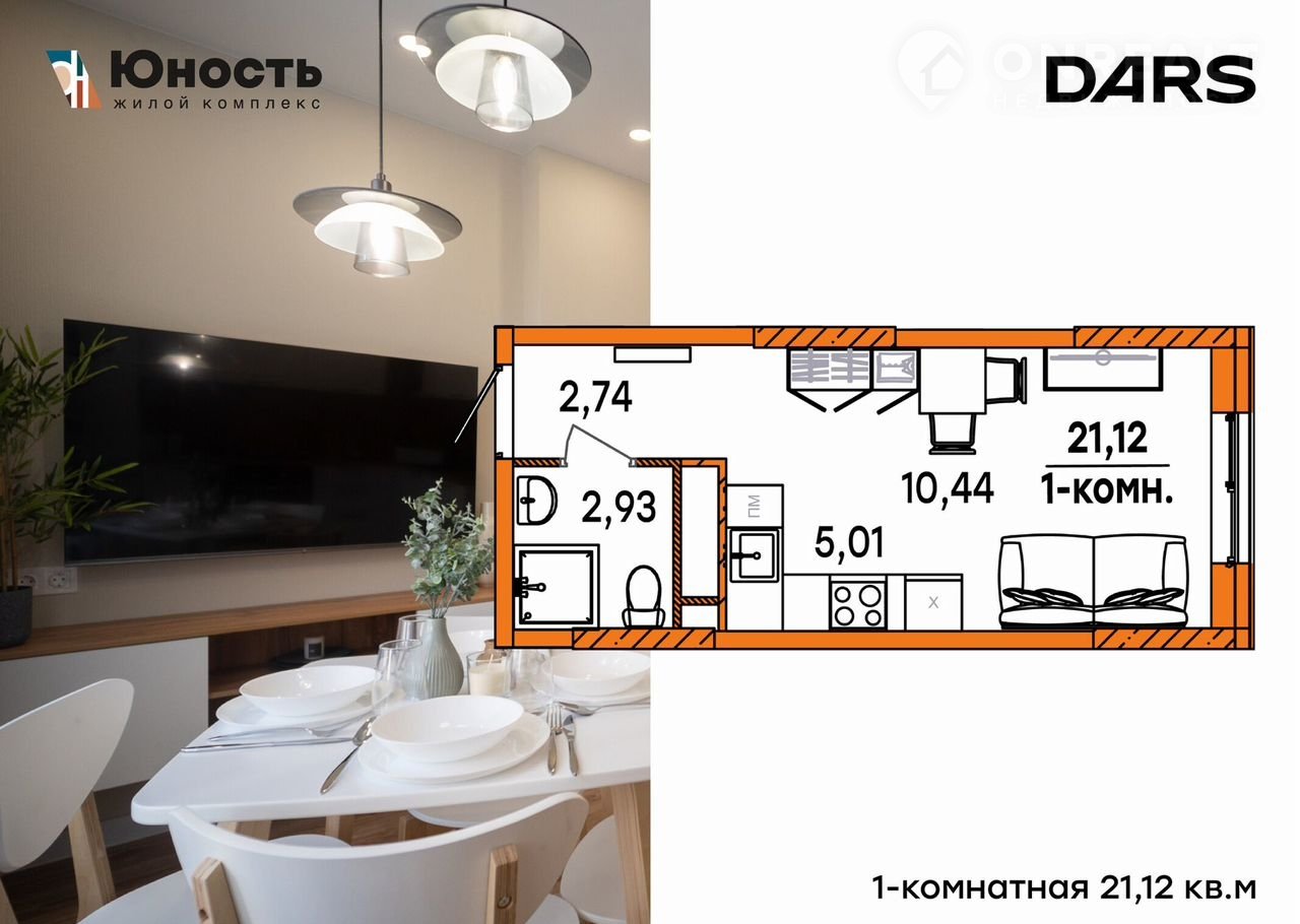 1-комнатная квартира, 21.1 м2, этаж 14 / 21, на продажу в Ульяновске