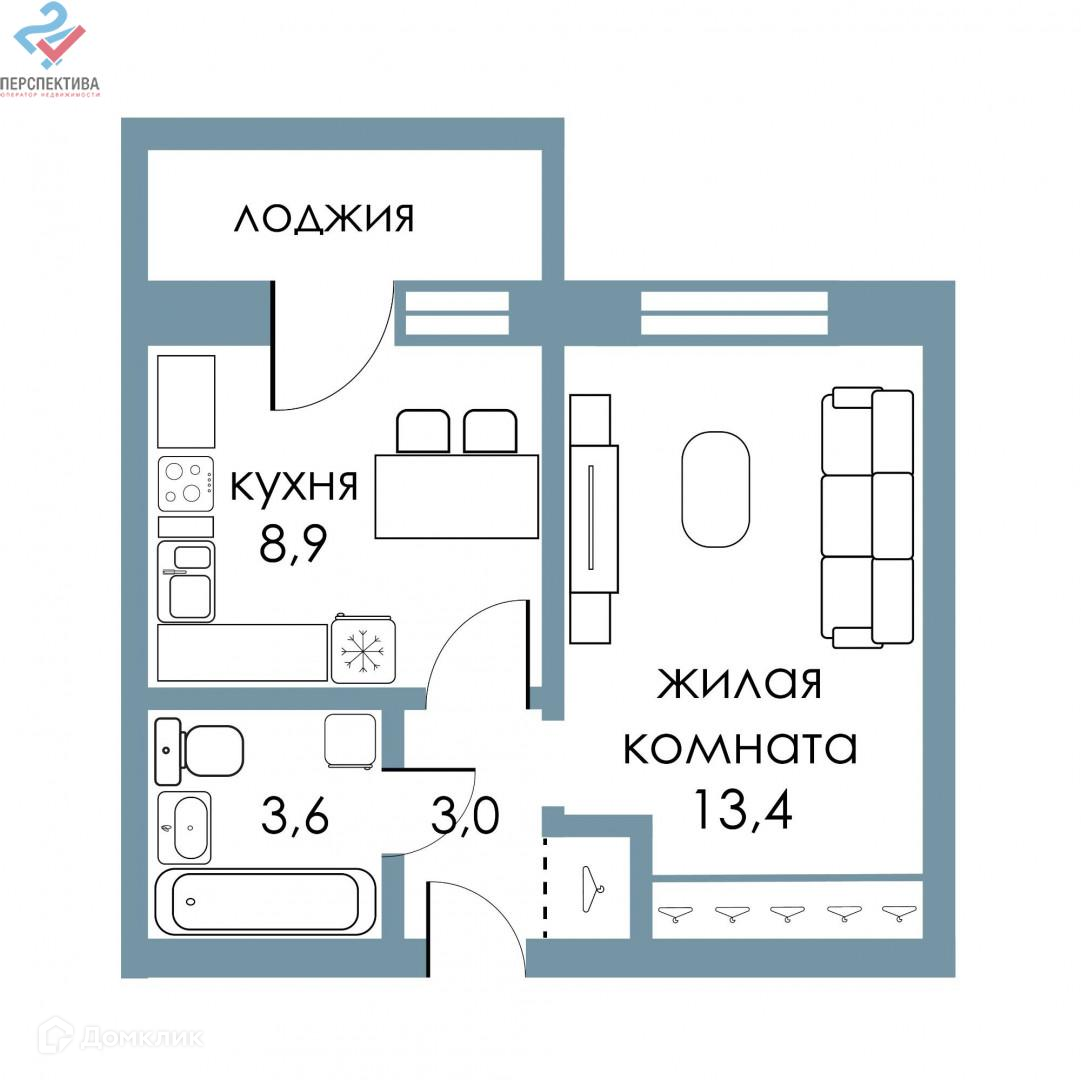 Общая площадь 32.9 м2