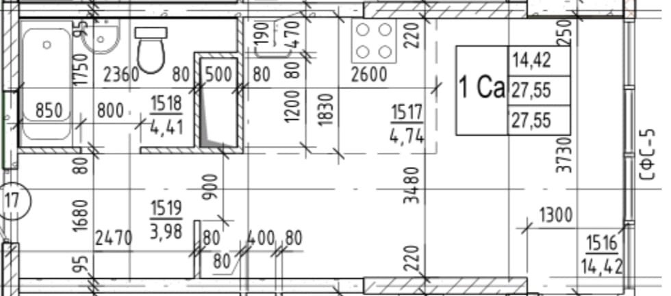 Общая площадь 27.55 м2