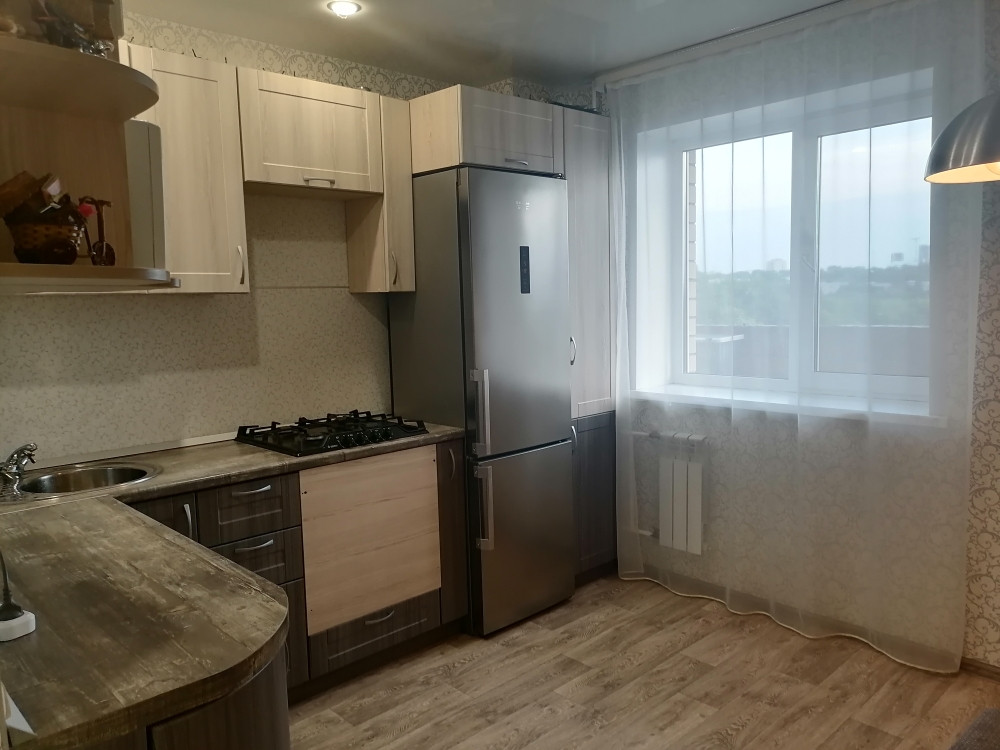 Сделан добротный ремонт: пластиковые окна, бронированная дверь, санузел частично в кафеле, натяжные потолки, на полу - хороший линолеум, кухонный гарнитур - в подарок!