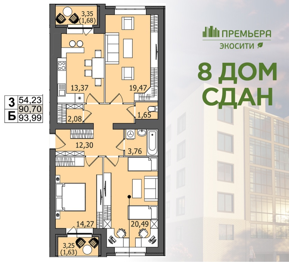 Дом сдан!  Кирпичный дом комфорт-класса в жилом комплекса ЭКОСИТИ (находится на пересечении Маршала Устинова и Ливанова).В квартире установлен двухконтурный котел (поквартирное отопление), что позволит Вам самостоятельно регулировать температуру в вашей квартире.Так же выполнена предчистовая отделка (базовая отделка): в квартире уже проведена электропроводка, выполнена стяжка пола и оштукатурены межкомнатные перегородки.  У вас есть возможность заказать ремонт от застройщика.