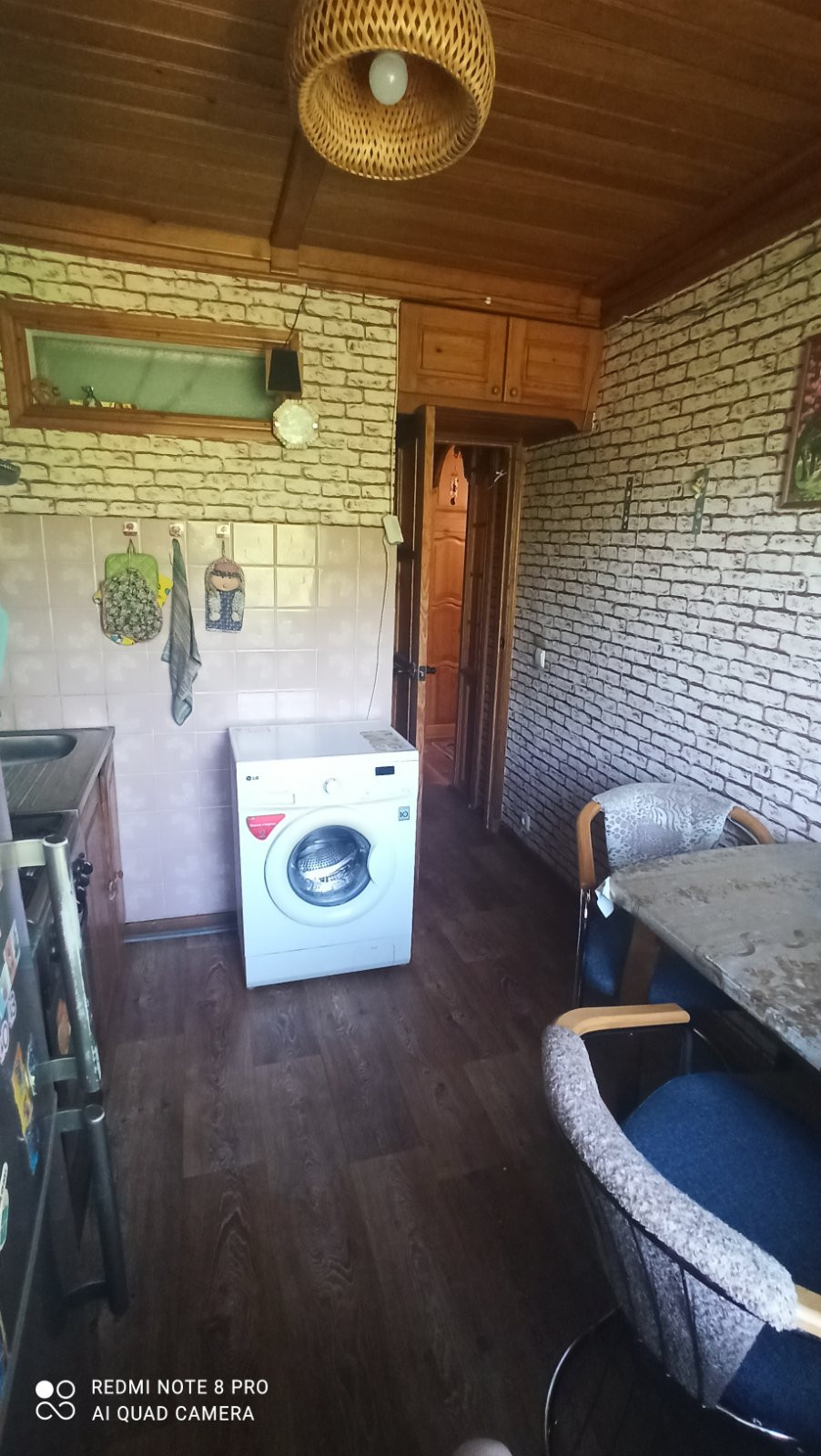 -в зале натяжной потолок, на кухне, в коридоре и в ванной комнате потолок обшит деревом, домофон;