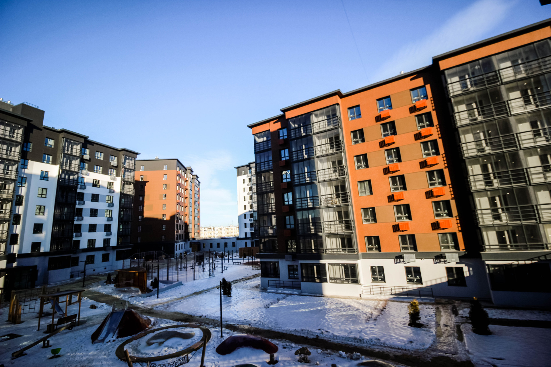 Безопасные дворы без машин с игровыми и спортивными площадками для детей разных возрастов. Обильное озеленение дворовой территории березами, кустарниками и цветами позволяет уединиться с природой, находясь в ритме городской жизни.