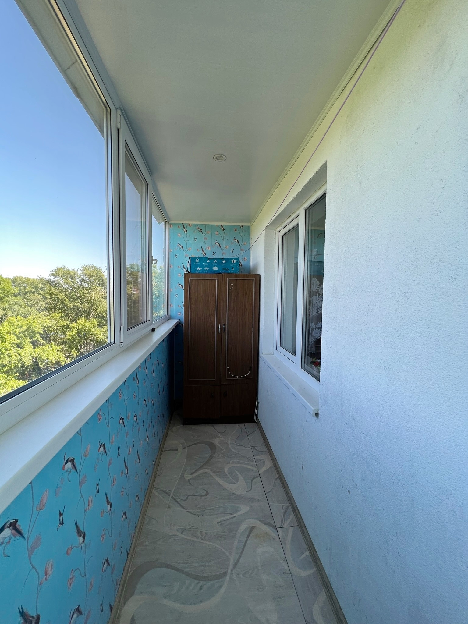 Лоджия большая, застеклена пластиком и отделана.