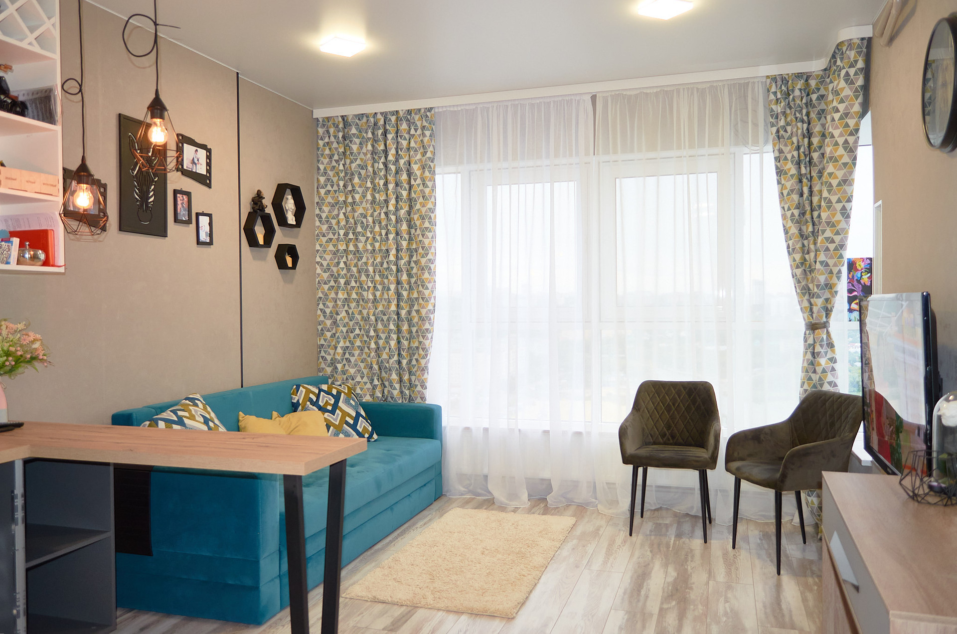 Новый дизайнерский ремонт из качественных материалов,  не требует дополнительных вложений.