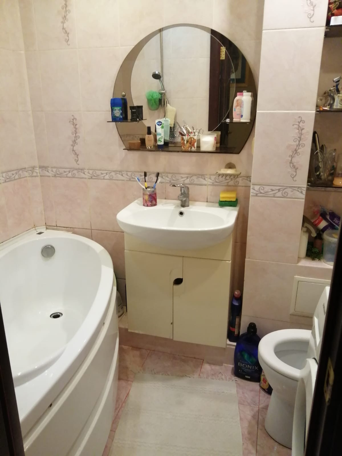 В гостиной установлен кондиционер. Стояки ХВС и канализации поменяны, счетчик на ХВС и эл-во.