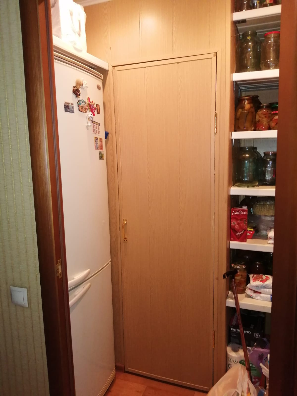 Балкона нет, НО есть вместительная кладовая с шкафом для одежды и полками.