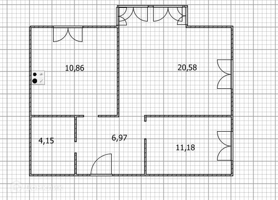 Общая площадь 53.9 м2