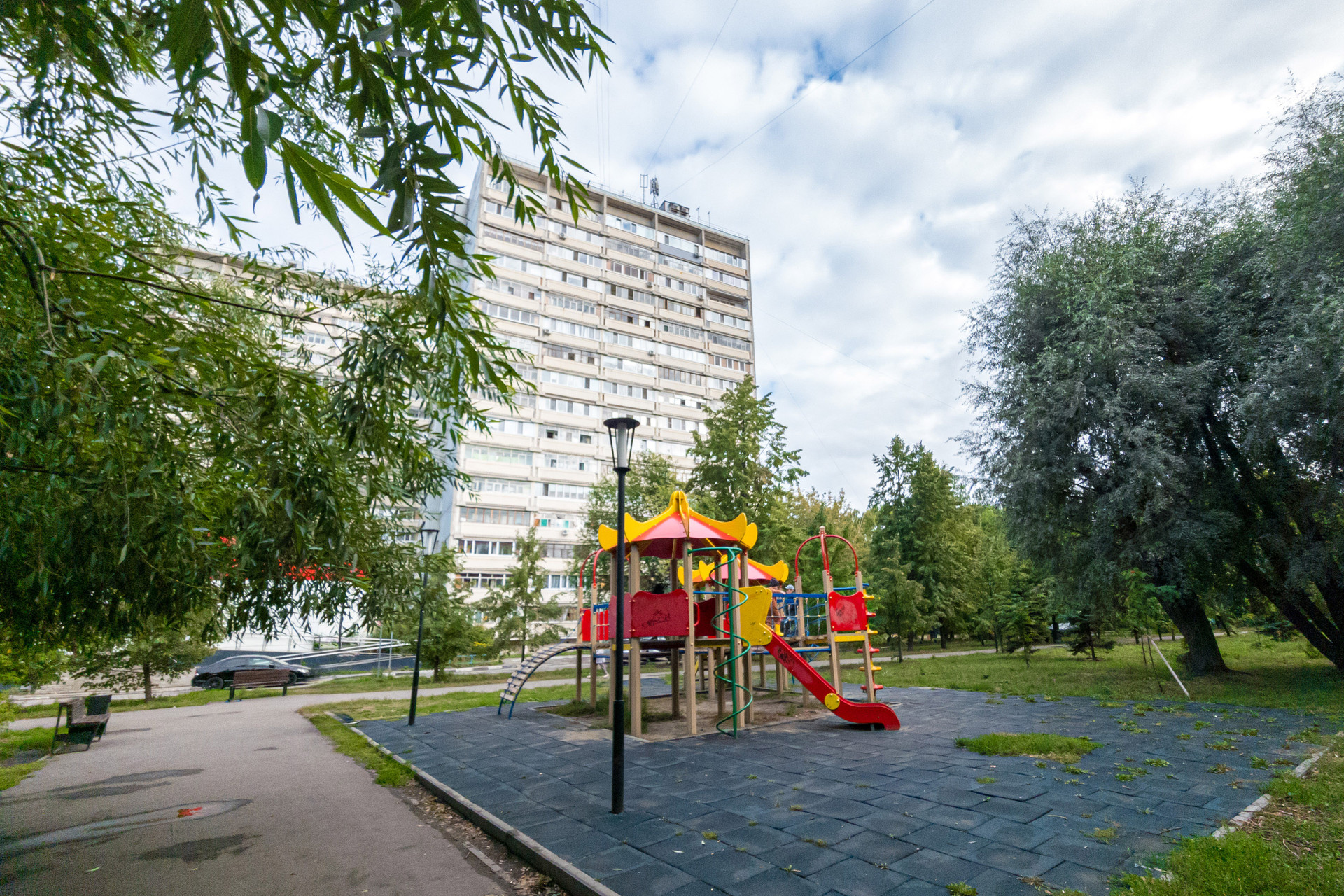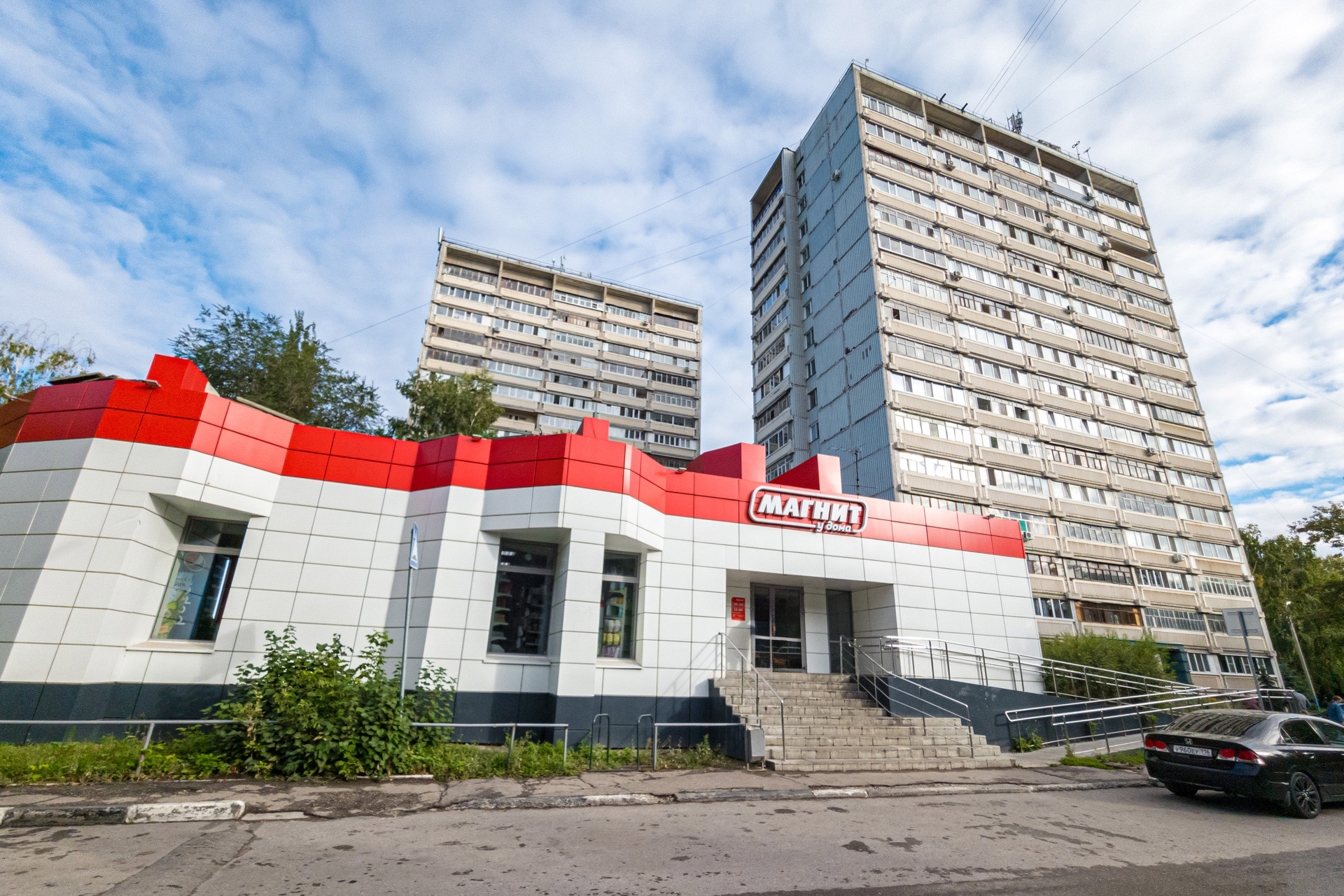 Дом удобно расположен в центральной части, но вдали от оживленной трассы, шума и пыли и окружен ухоженной и благоустроенной придомовой территорией. Во дворе выделенные места для парковки автомобилей и аллея с озеленением.