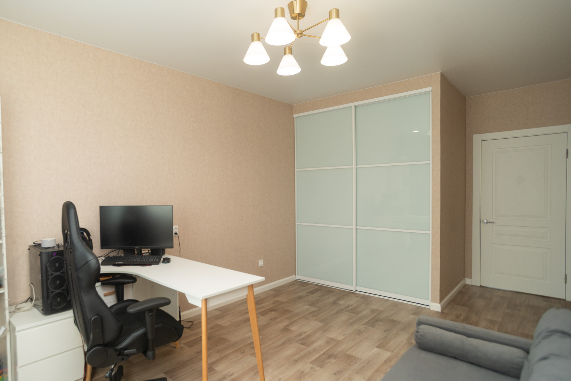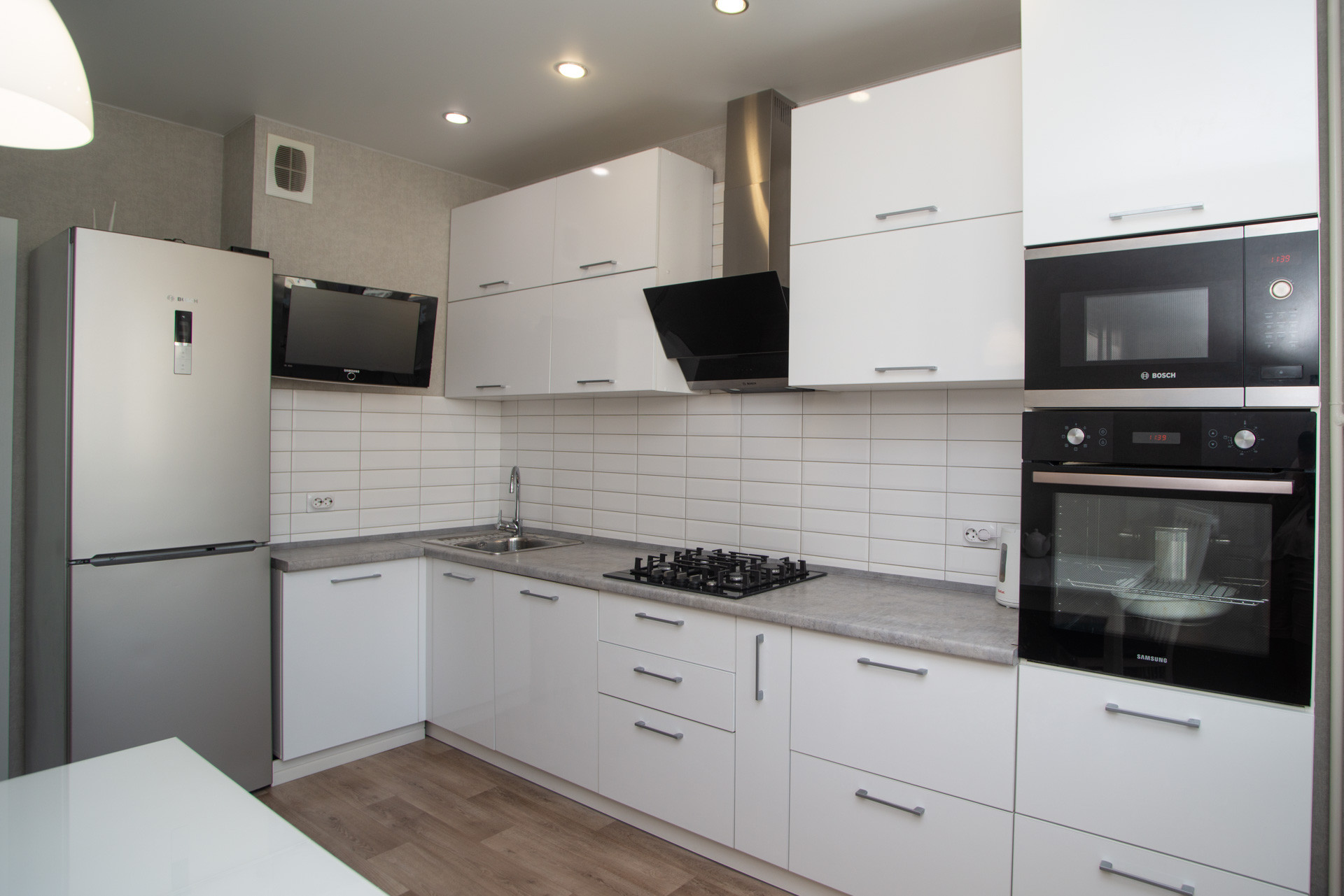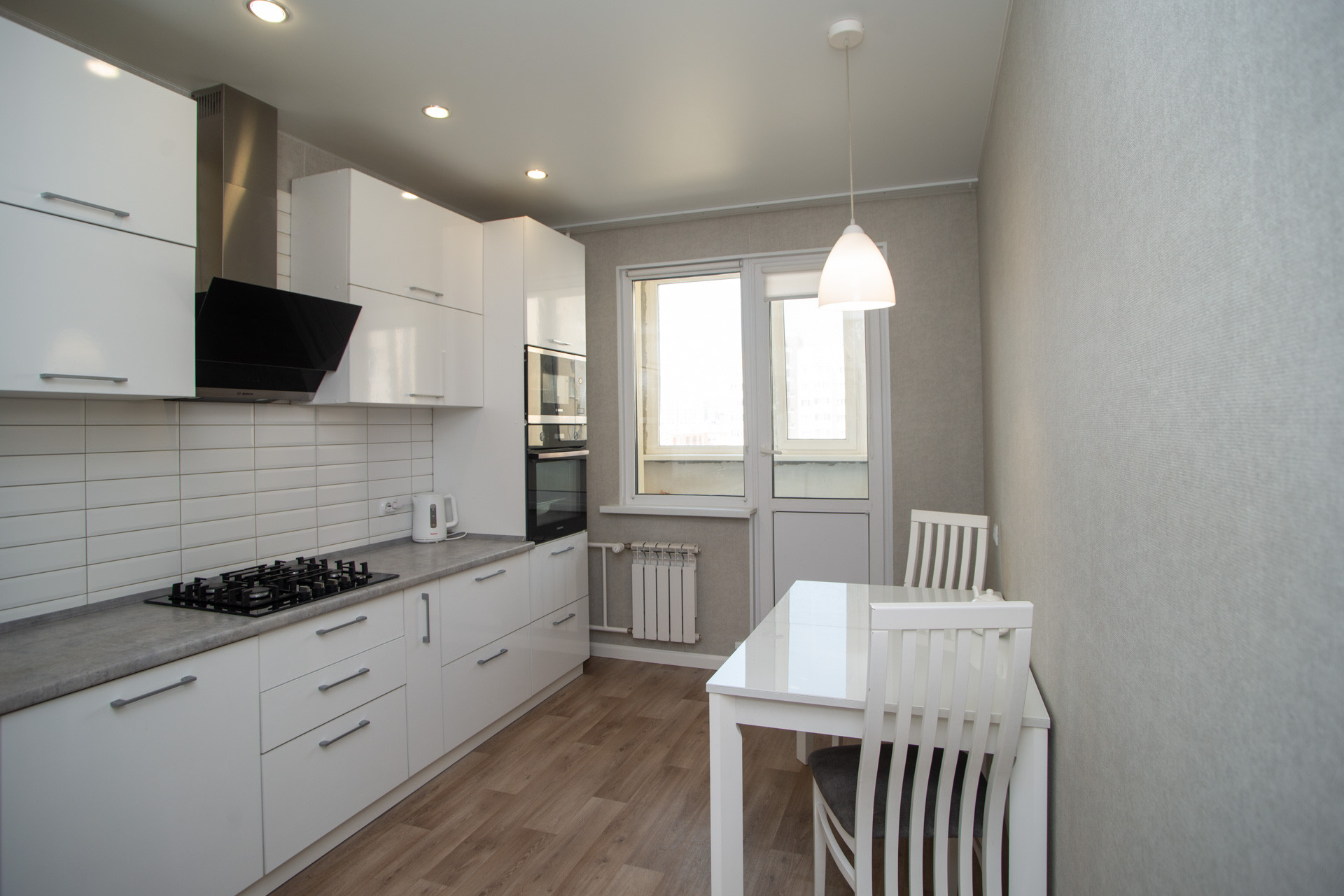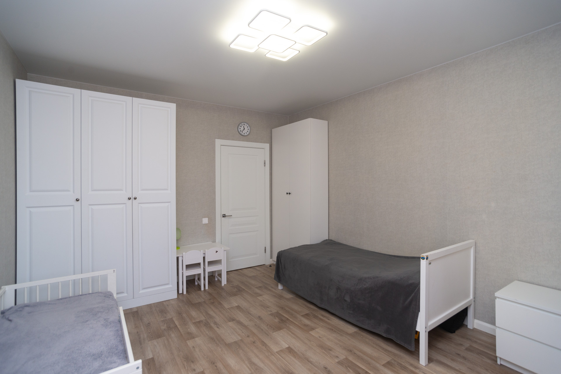 Остается кухонный гарнитур со встроенной техникой, гардероб система Альгот в спальне. Шкаф в прихожей. Шкаф в детской комнате.