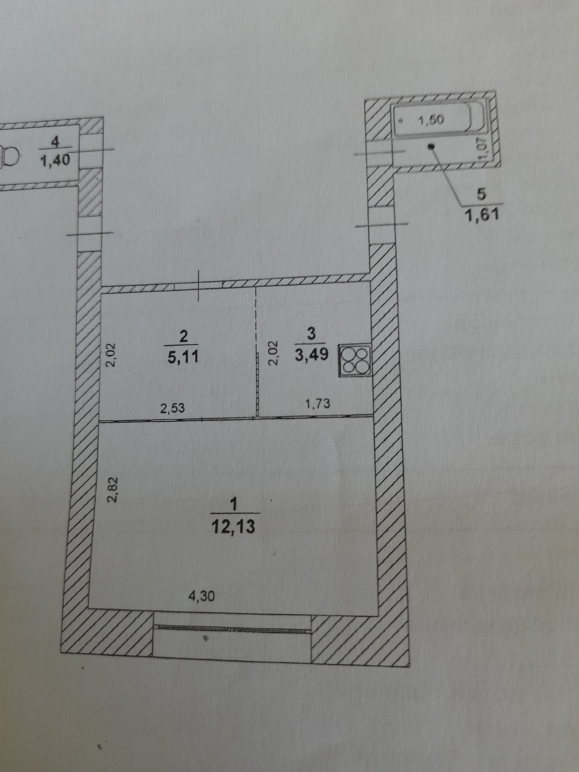 Площадь кухни 3 м2