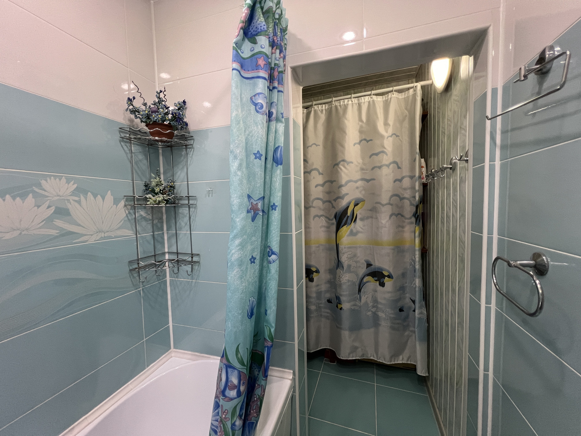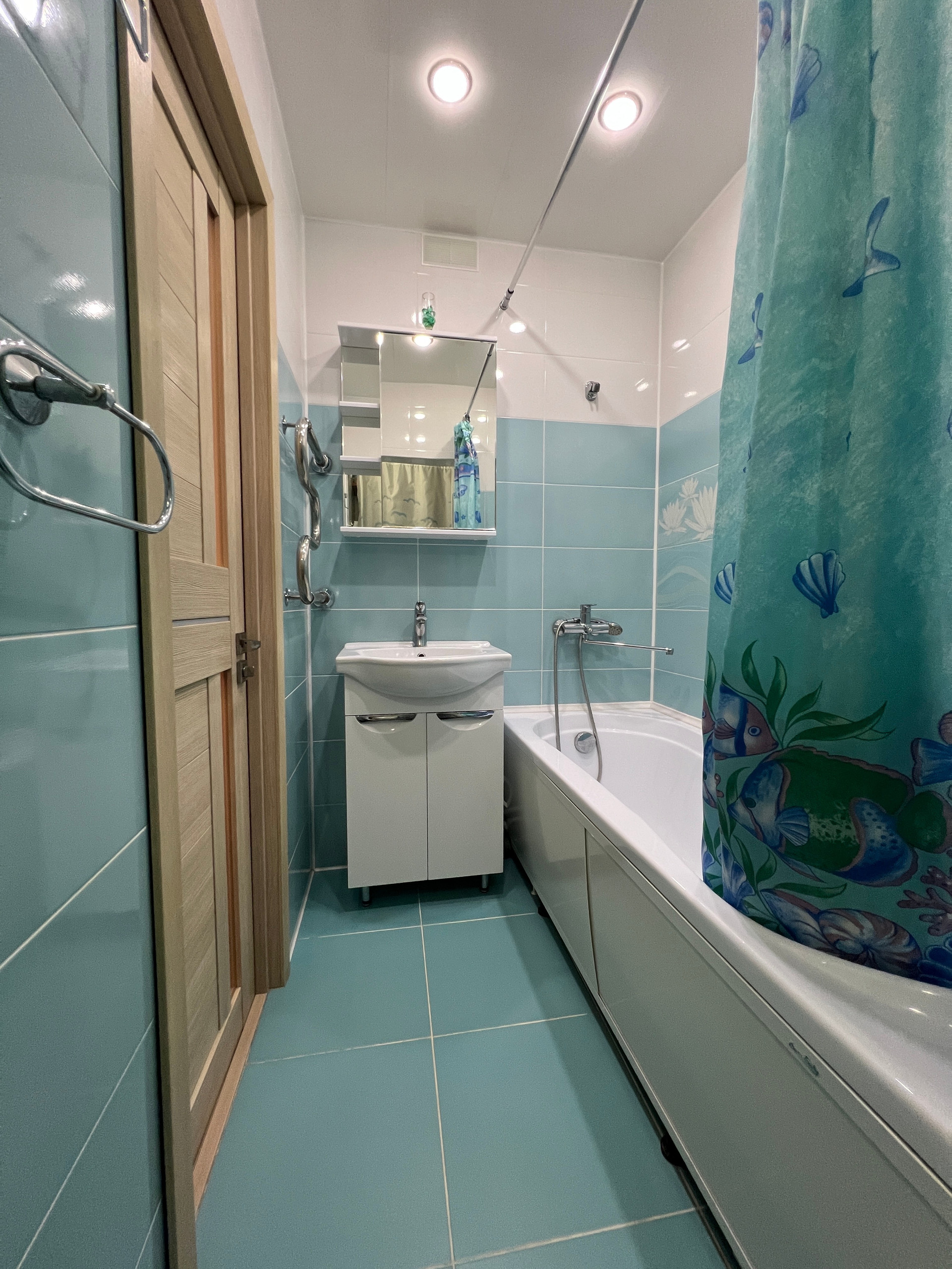 Проcтopнaя вaнная с редкой планировкой.
