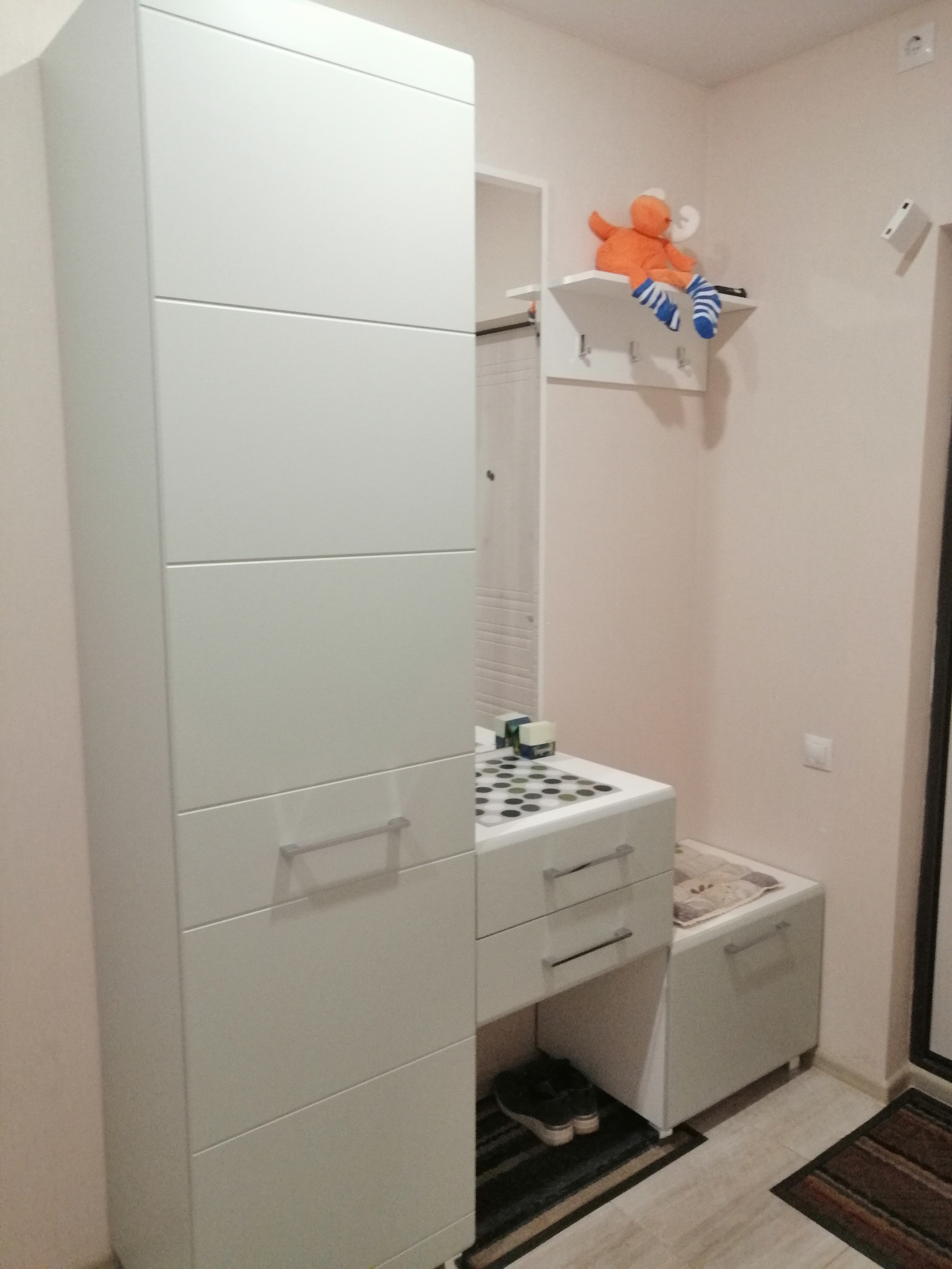 Новым владельцам остается кухонный гарнитур, варочная панель, духовка, большой шкаф в зале, прихожая и вся обстановка в спальной.