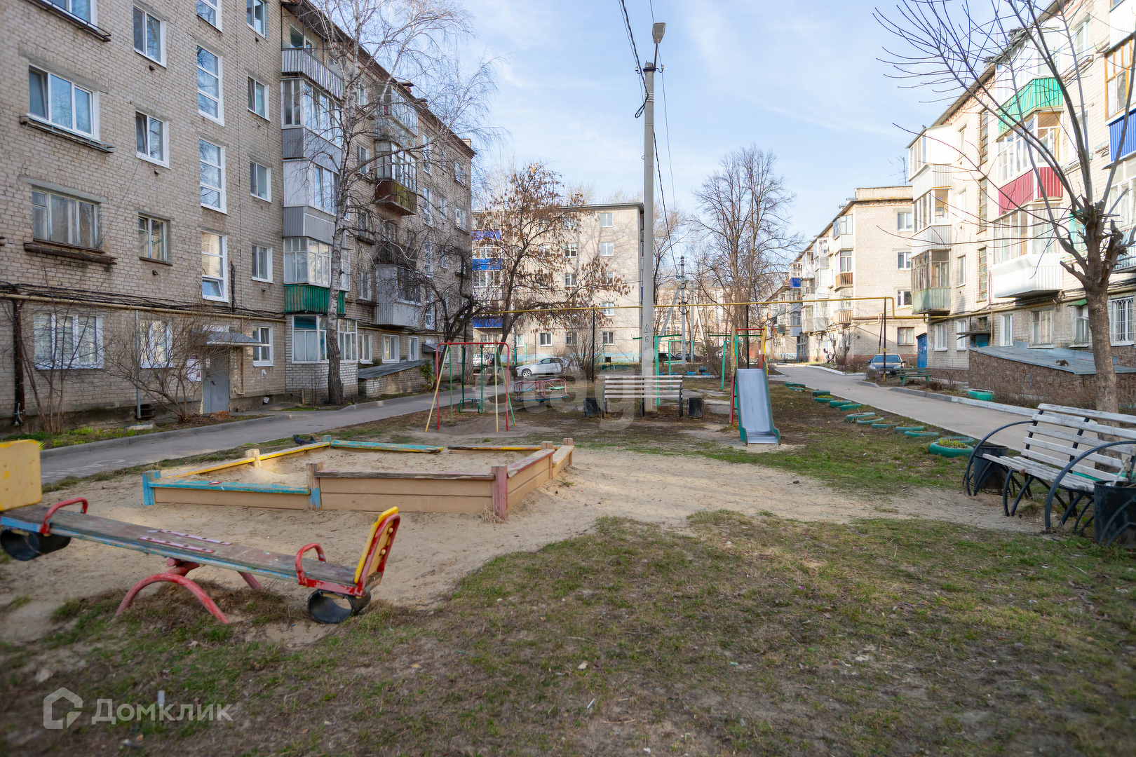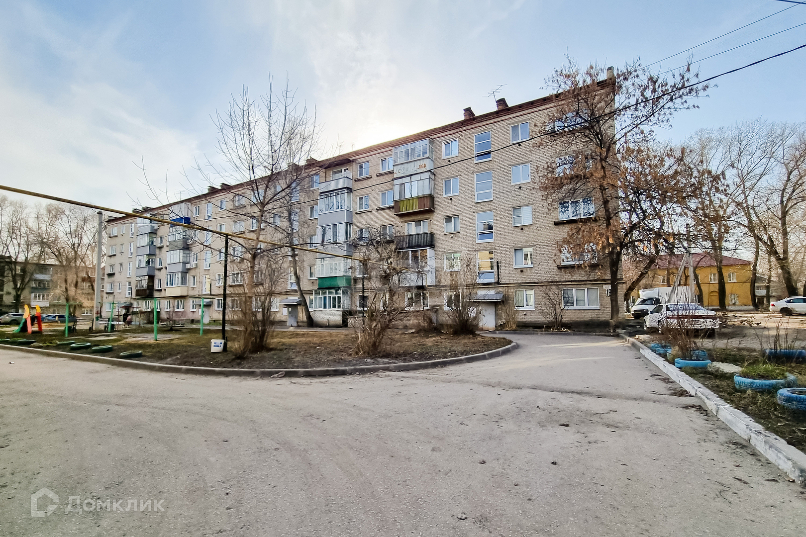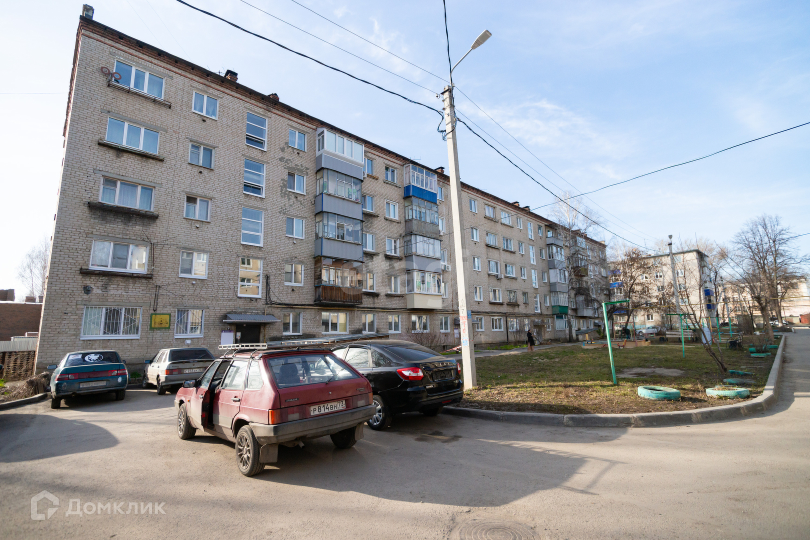 Сам дом расположен во дворе. Придомовая территория ухоженная, имеются парковочные места и детская площадка.