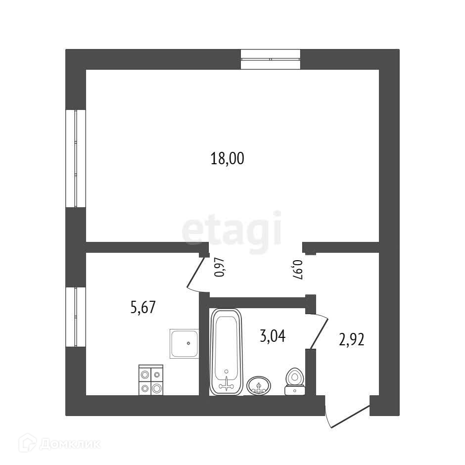 Общая площадь 29.6 м2