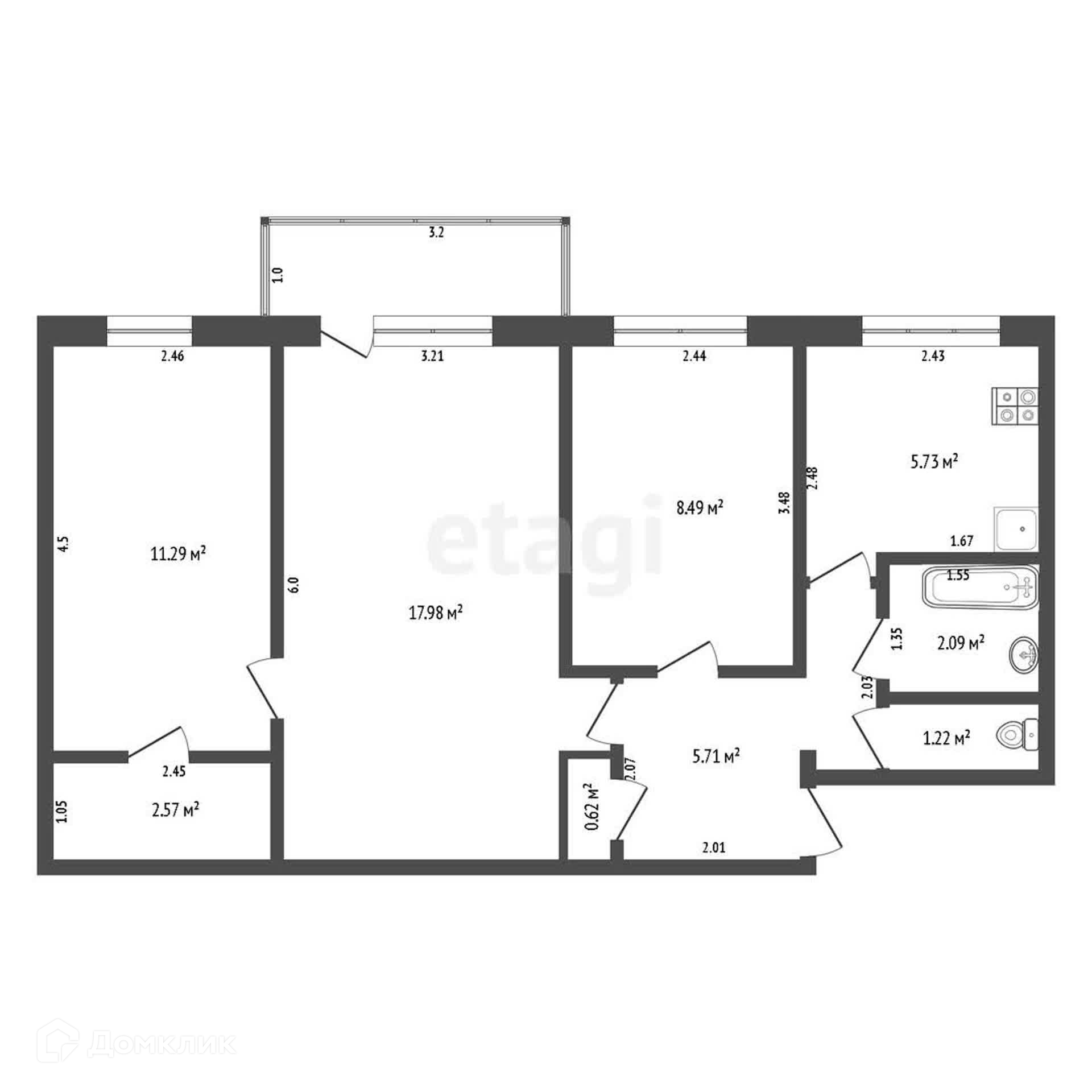Общая площадь 57 м2