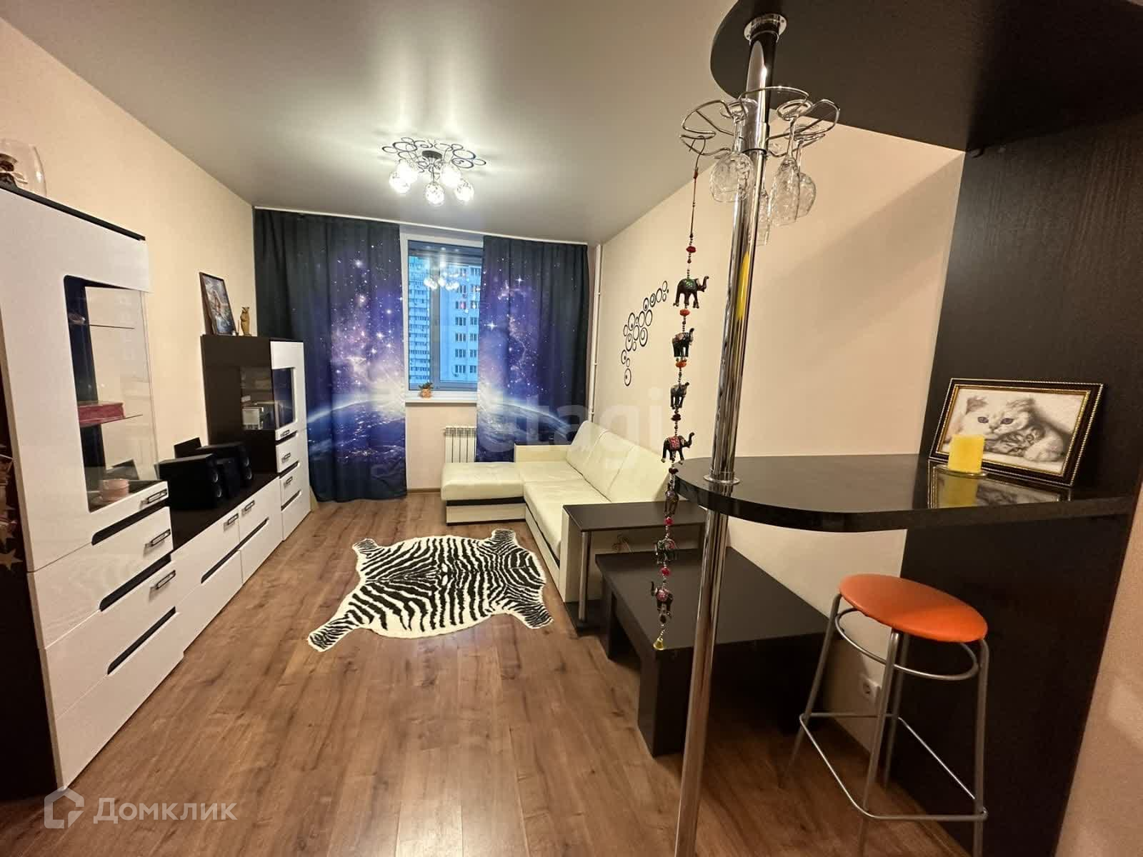 Вся мебель и техника остаются новым хозяевам – заезжай и живи! Жилая комната квадратной, правильной формы, можно удобно расставить мебель и останется много полезного пространства. Современная кухня с барной стойкой удобна для приёма гостей! Сан.узел совмещённый, отделан кафелем. Из окон красивый вид на жилой комплекс.