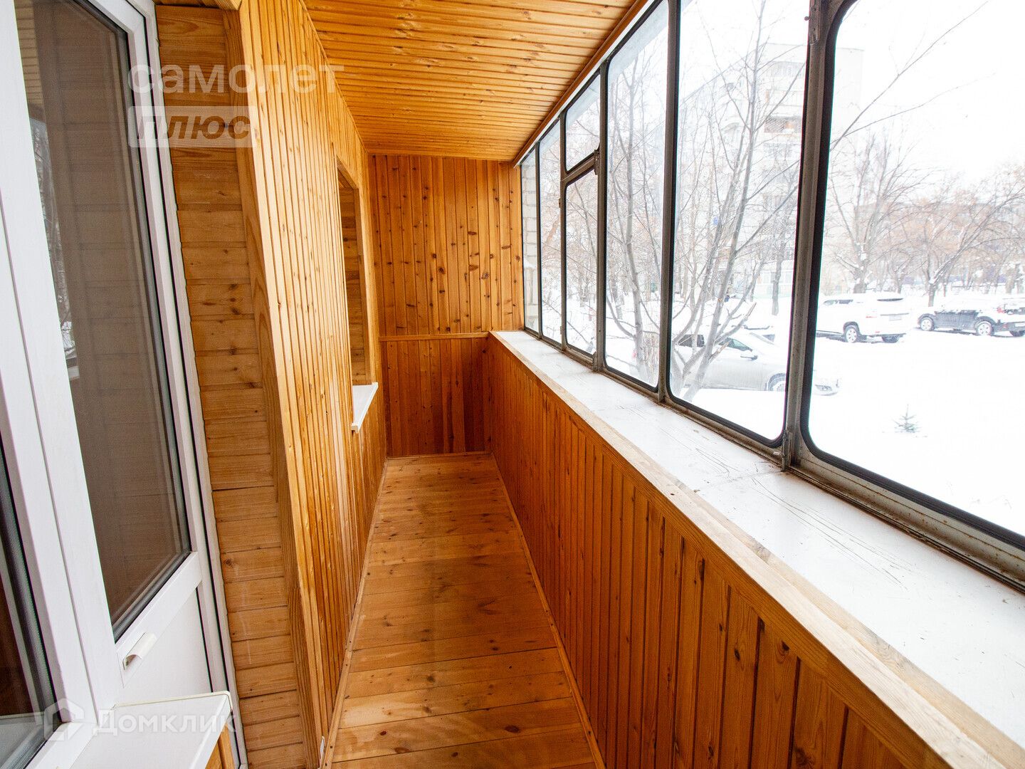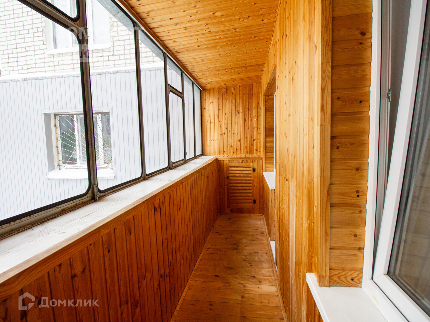 -просторная лоджия, выполнена отделка евровагонкой.