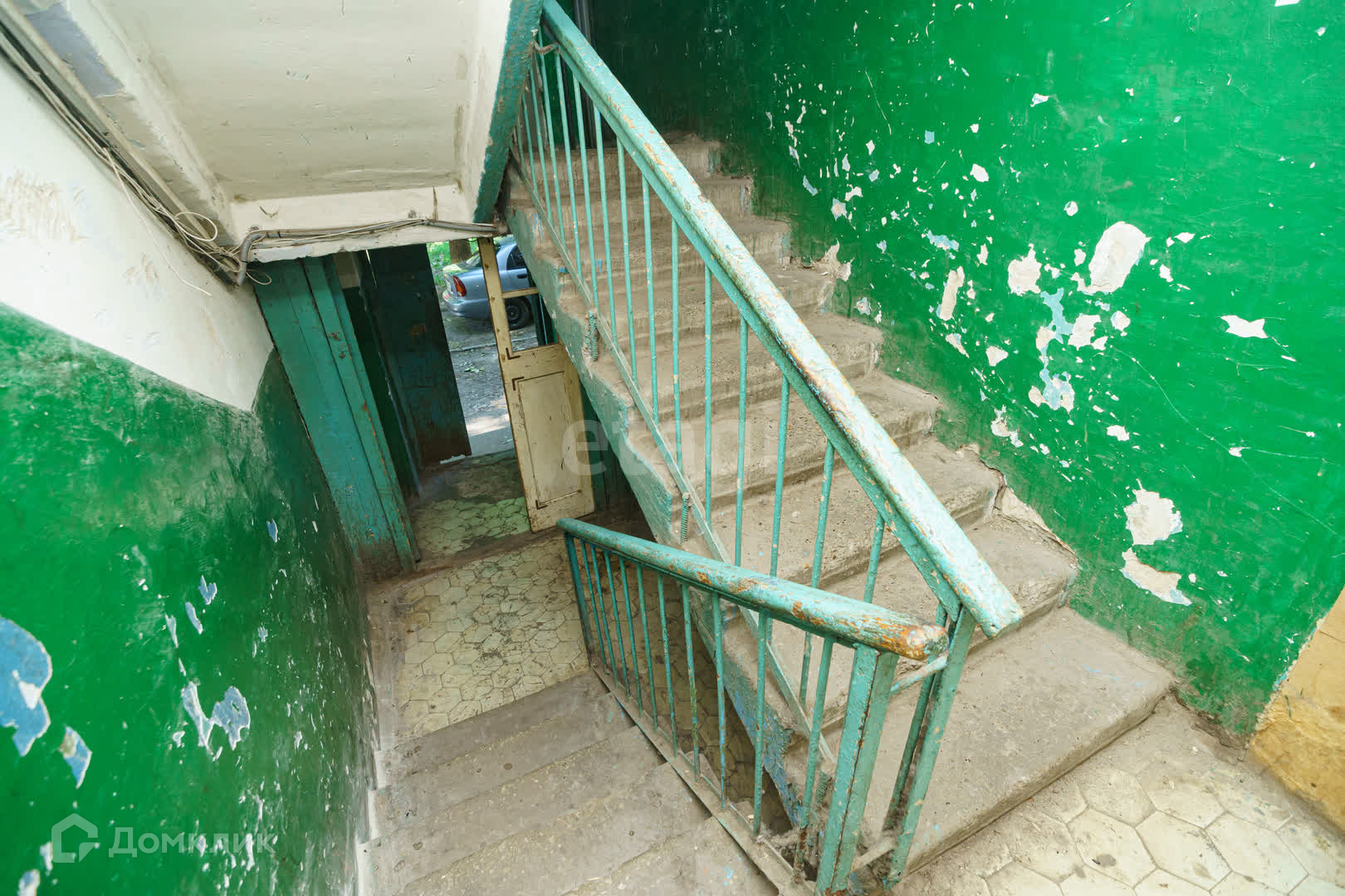 Окна пластиковые выходят на парковку перед домом.