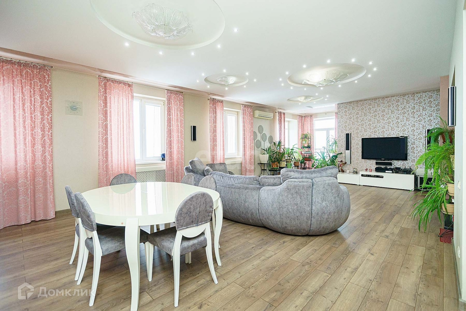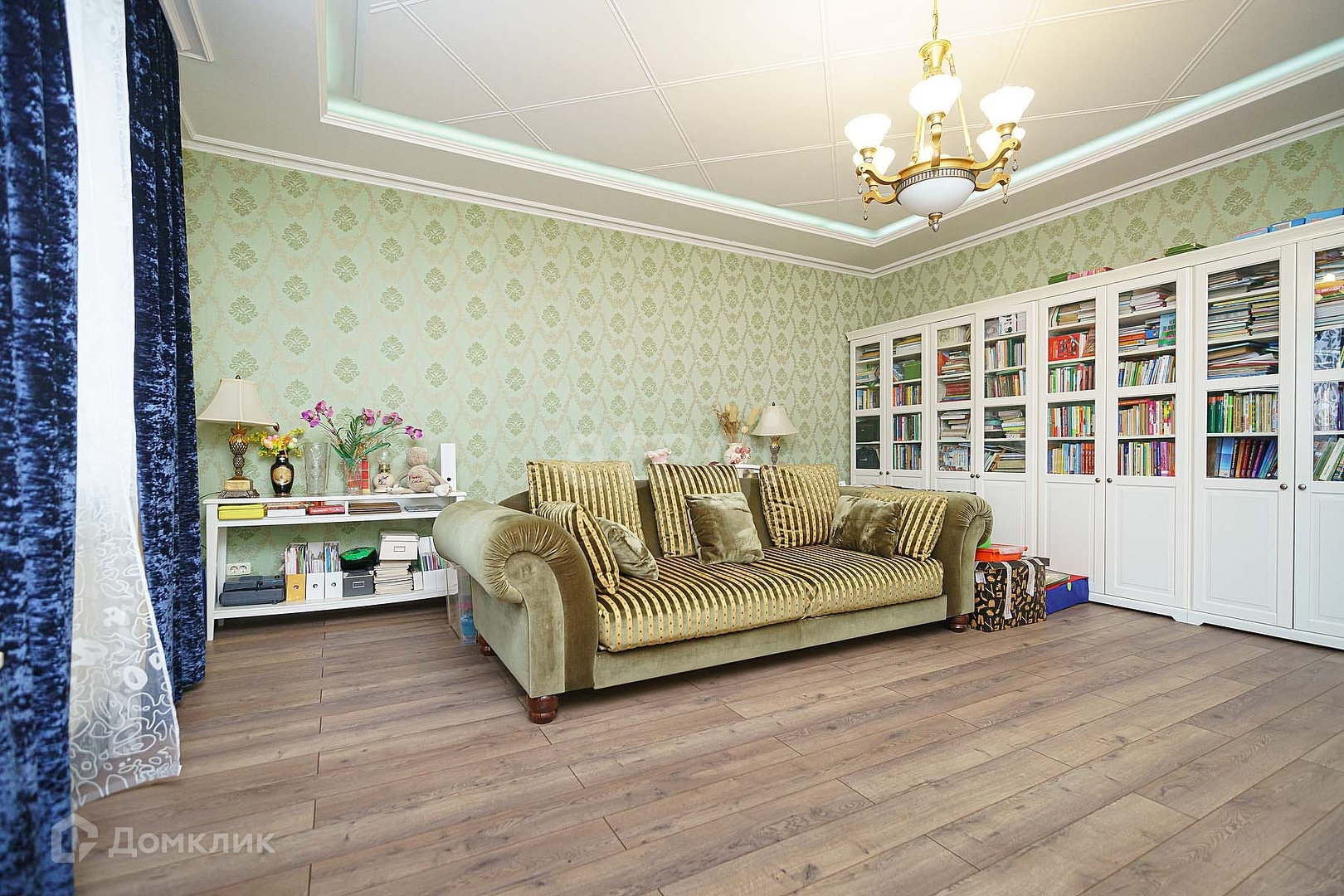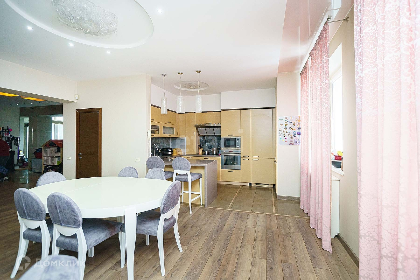 Есть домашний кинотеатр с техникой Marantz, Hartman/Kardon, Pioneer. Диван фабрики - 8 марта. Люстры в гостиной из муранского стекла.
