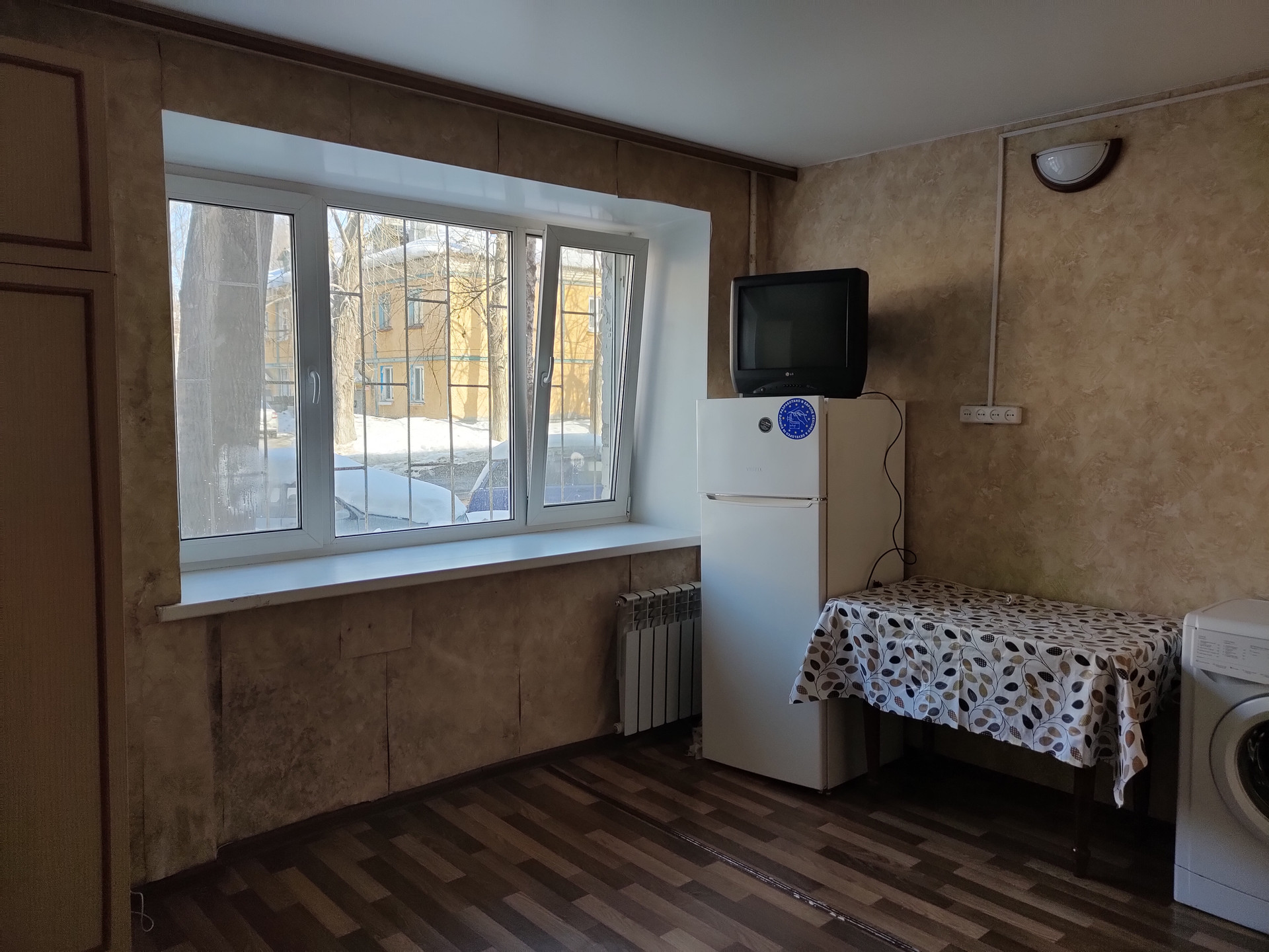 В квартире косметический ремонт: пластиковое окно, натяжной потолок, линолеум. Достаточно лишь обновить обои.