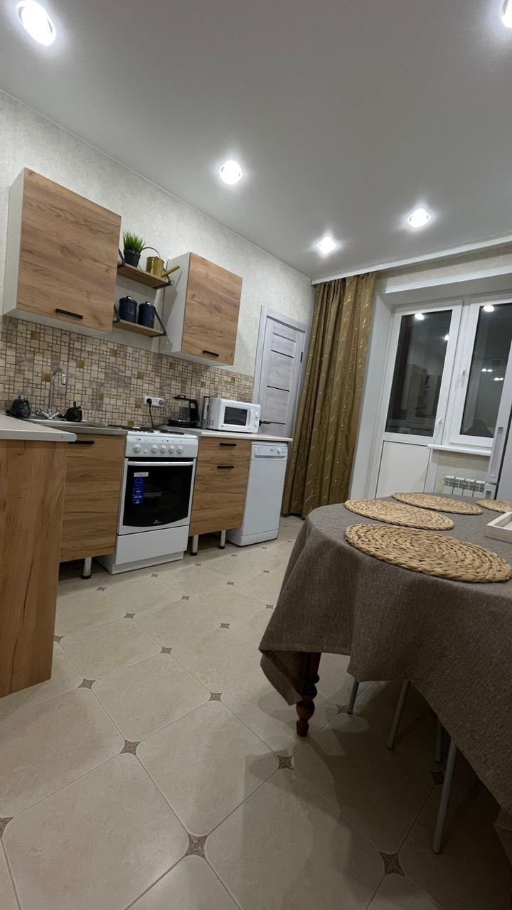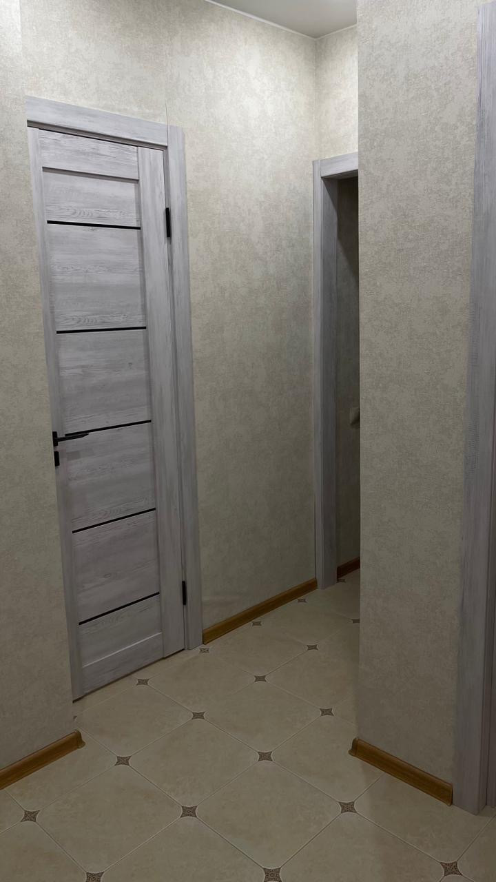 С новым ремонтом , дорогим материалом , ремонт делался для себя , то есть качественно !