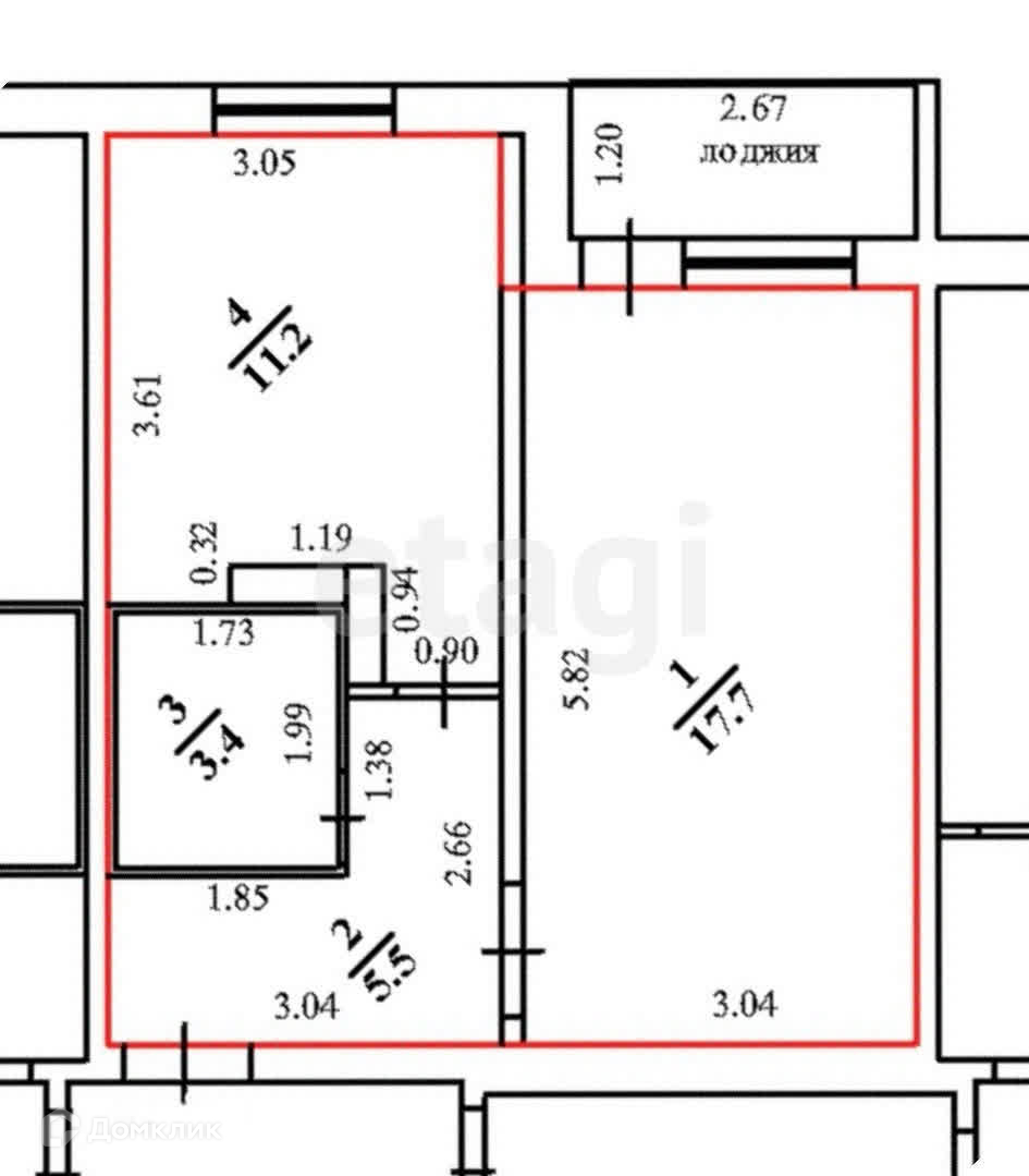 Общая площадь 37.8 м2
